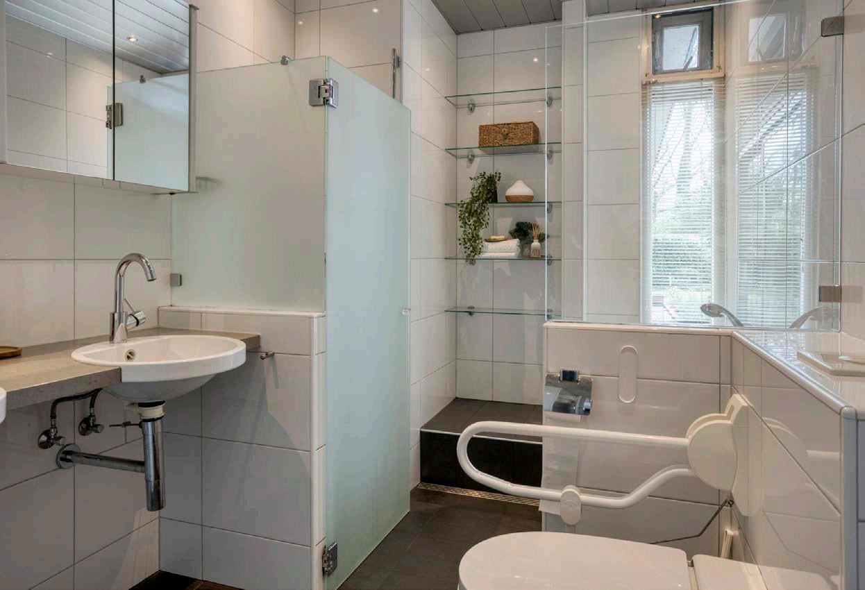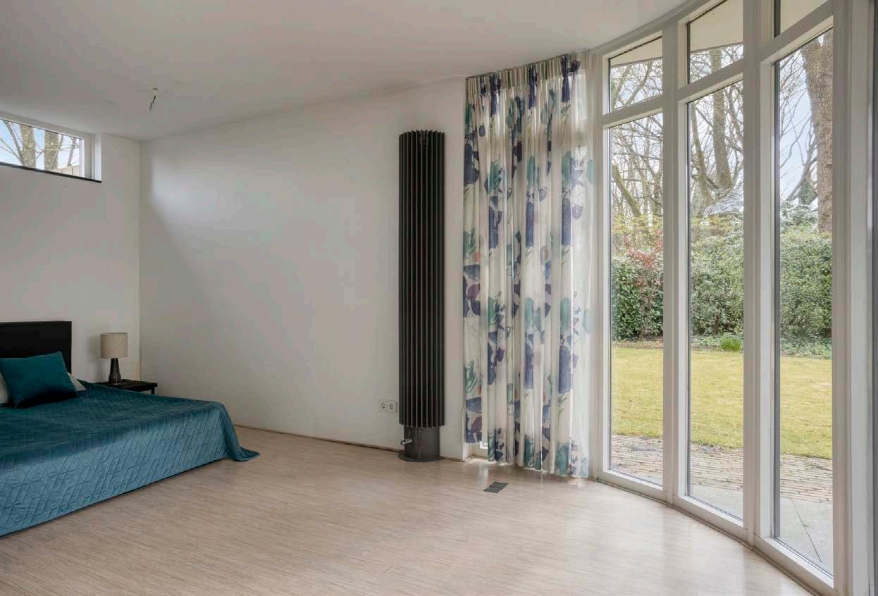 De ruime en gelijkvloerse opzet van deze woning maakt hem toekomstbestendig en comfortabel. Direct grenzend aan de woonkamer, de eerste slaapkamer. Deze is licht, ruim en heeft ook directe toegang tot de tuin. Aan de rechterzijde van de woning ligt een tweede hal die naar een apart toilet, twee badkamers en twee slaapkamers leidt. De twee slaapkamers aan de achterzijde van de woning hebben beide openslaande deuren naar de tuin.