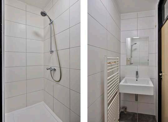 De badkamer is netjes en heeft een douche en wastafel, een ruime berging voorzien van aansluitingen t.b.v. de wasapparatuur. Het toilet is volledig betegeld en zit apart voor extra gemak.