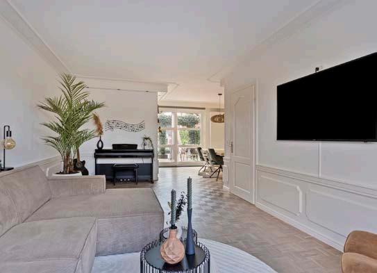 Bij binnenkomst in deze woning voel je direct een warme en uitnodigende sfeer. De begane grond is ruim en licht, met een open indeling die zorgt voor een fijne verbinding tussen de verschillende ruimtes. De woonkamer, met zijn grote ramen in de erker, baadt in het daglicht en biedt voldoende plek voor een comfortabele zithoek. Hier kun je je ontspannen na een drukke dag of samen met het gezin genieten van een filmavond.