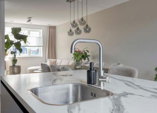 De moderne keuken is een absolute eyecatcher en dé plek waar functionaliteit en design samenkomen. Met een handige wandopstelling heb je genoeg opberg- en werkruimte, terwijl het centrale spoeleiland met barretje ideaal is voor kopjes koffie in de ochtend of gezellige borrels met vrienden. Koken is hier niet alleen een noodzaak, maar een echte beleving.
