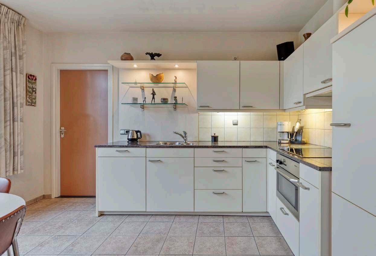 De keuken, nu gescheiden van de woonkamer door houten kasten, straalt een tijdloze charme uit. Maar wacht, ben jij een fan van dat heerlijke open gevoel? Dan kun je hier jouw eigen woonkeuken creëren. Stel je voor: koken terwijl je een oogje op de kinderen in de woonkamer houdt of gezellig samen vrienden ontvangt, alles in één vloeiende ruimte.
