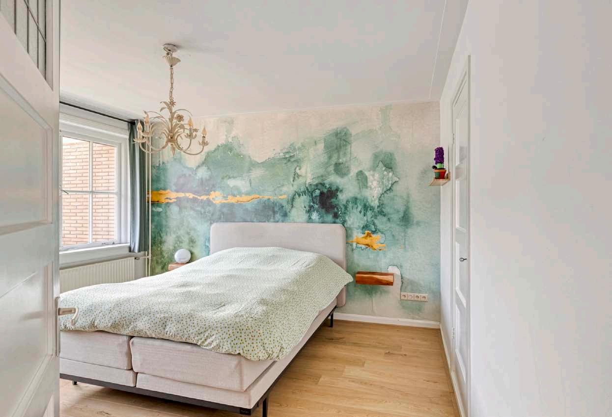 De grootste slaapkamer bevindt zich aan de achterzijde van de woning en vormt een bijzonder fijne plek om tot rust te komen. Deze kamer biedt bovendien directe toegang tot een ruim balkon, wat een mooie extra buitenruimte creëert op de verdieping. Met de ligging op het oosten is dit een heerlijke plek om de dag te beginnen.