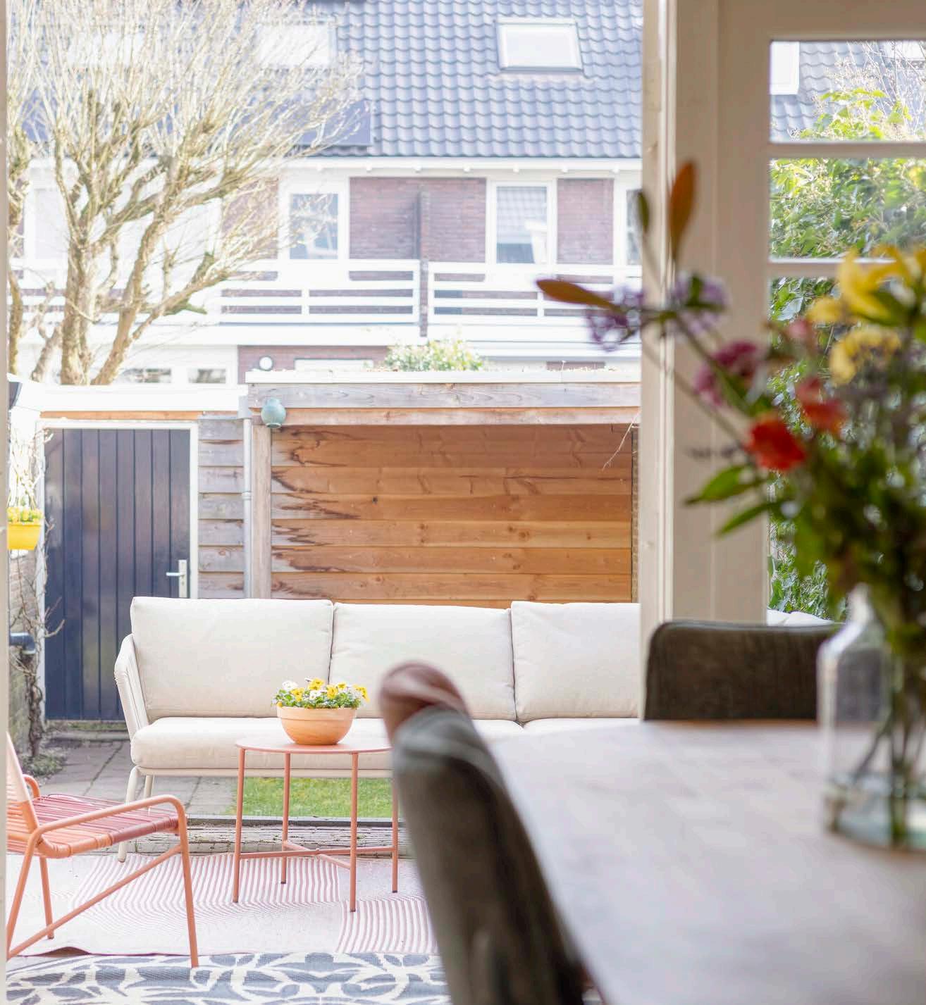 De tuin biedt volop mogelijkheden om een fijne buitenplek te creëren, bijvoorbeeld met een gezellige zithoek, een eettafel voor lange zomeravonden of wat groen voor extra sfeer en privacy.