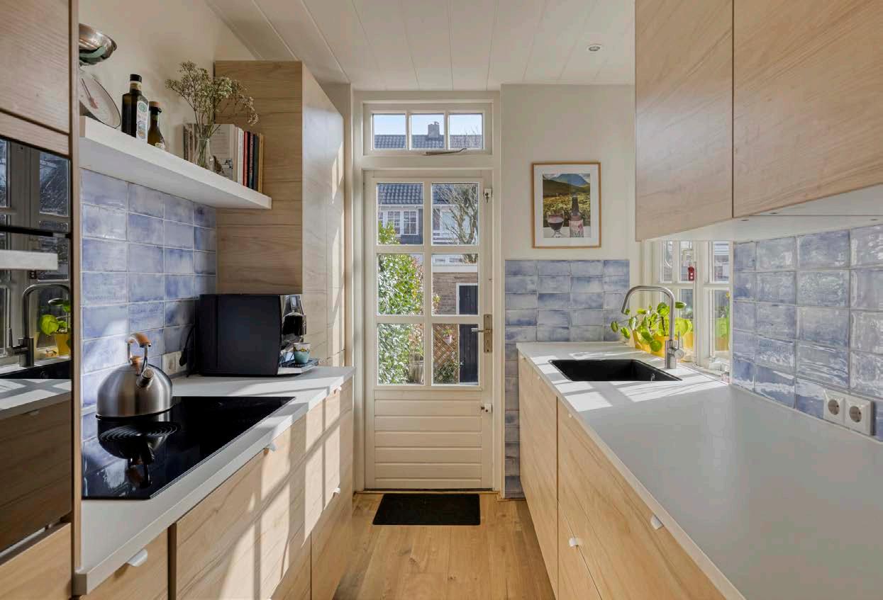 De gesloten keuken is enkele jaren geleden vernieuwd en heeft daardoor een frisse, moderne uitstraling gekregen. De ruimte is praktisch en doordacht ingedeeld, waardoor koken hier niet alleen prettig maar ook efficiënt is. Dankzij het ruime werkblad is er volop plek om uitgebreid te koken, maaltijden voor te bereiden of gezellig samen bezig te zijn in de keuken. De combinatie van moderne materialen en een tijdloos ontwerp zorgt voor een verzorgde en eigentijdse sfeer. Wat deze keuken extra aangenaam maakt, is de fijne lichtinval. Het extra raam laat veel daglicht binnen, waardoor de ruimte open en levendig aanvoelt gedurende de dag. Daarnaast beschikt de keuken over directe toegang tot de achtertuin.