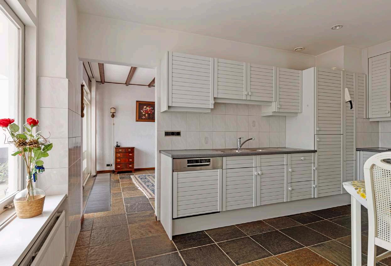De leefkeuken is dé plek waar samenkomen centraal staat. Hier is voldoende ruimte voor een grote eettafel, zodat je uitgebreid kunt dineren met familie of vrienden. De keuken is van alle gemakken voorzien, zoals een gaskookplaat, oven, koelkast, vriezer en vaatwasser. Of je nu een snelle maaltijd wilt bereiden of uitgebreid wilt koken, hier kan het allemaal.