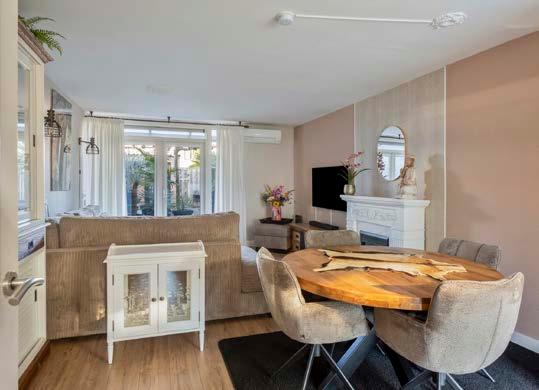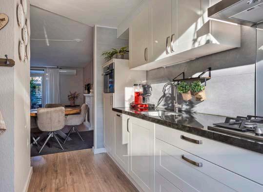 Stel je voor, je begint je dag in de lichte woonkamer met een heerlijk kopje koffie, terwijl de zon door de tuindeuren naar binnen valt. De woonkamer, met een mooie laminaatvloer en strak stucwerk, voelt onmiddellijk als thuis.