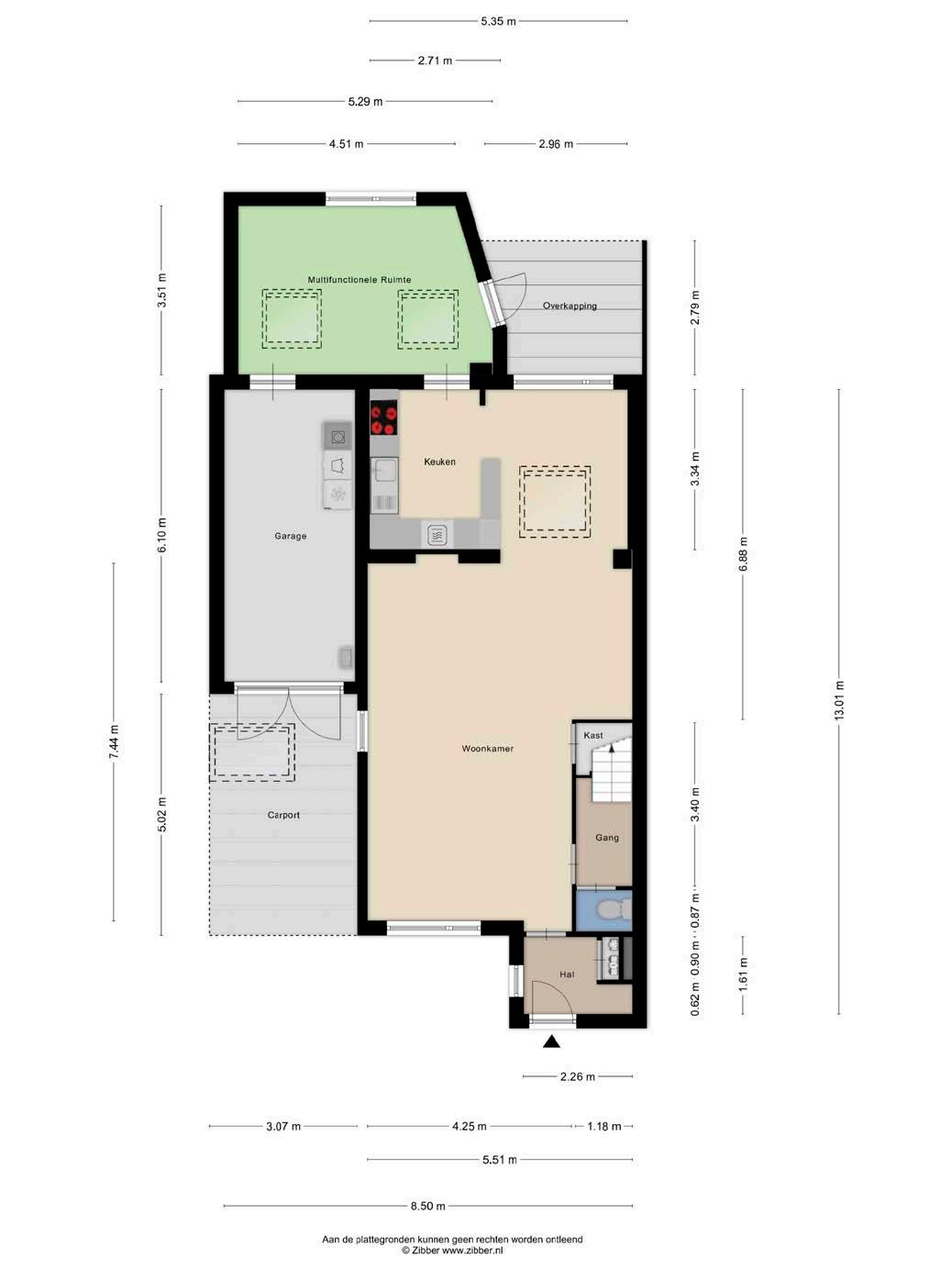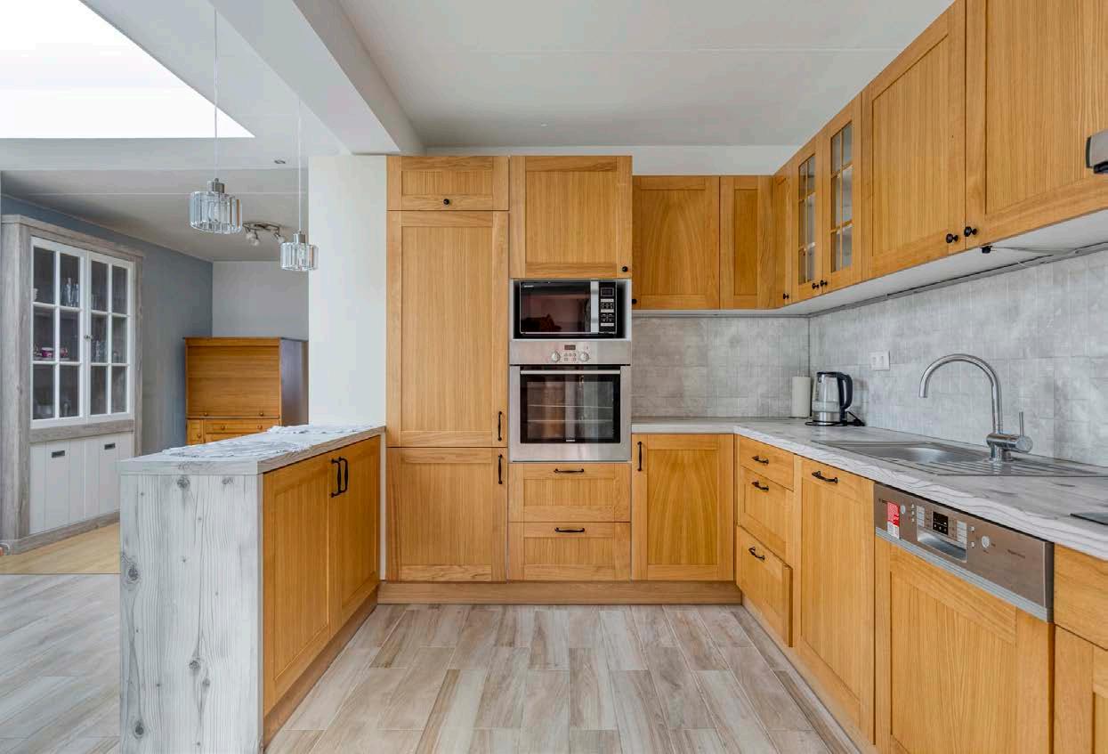 De keuken, gelegen aan de woonkamer, biedt alle praktische gemakken die je nodig hebt. Denk hierbij aan een inductiekookplaat, oven, koelkast, vriezer en vaatwasser. Of je nu uitgebreide diners wilt koken of gewoon snel iets klaarmaakt na een drukke dag, alles is binnen handbereik. Extra handig is de toegang vanuit de keuken naar een praktische, multifunctionele ruimte. Deze ruimte kun je gebruiken als berging, bijkeuken, hobbyruimte of bijvoorbeeld een speelhoek voor de kinderen.