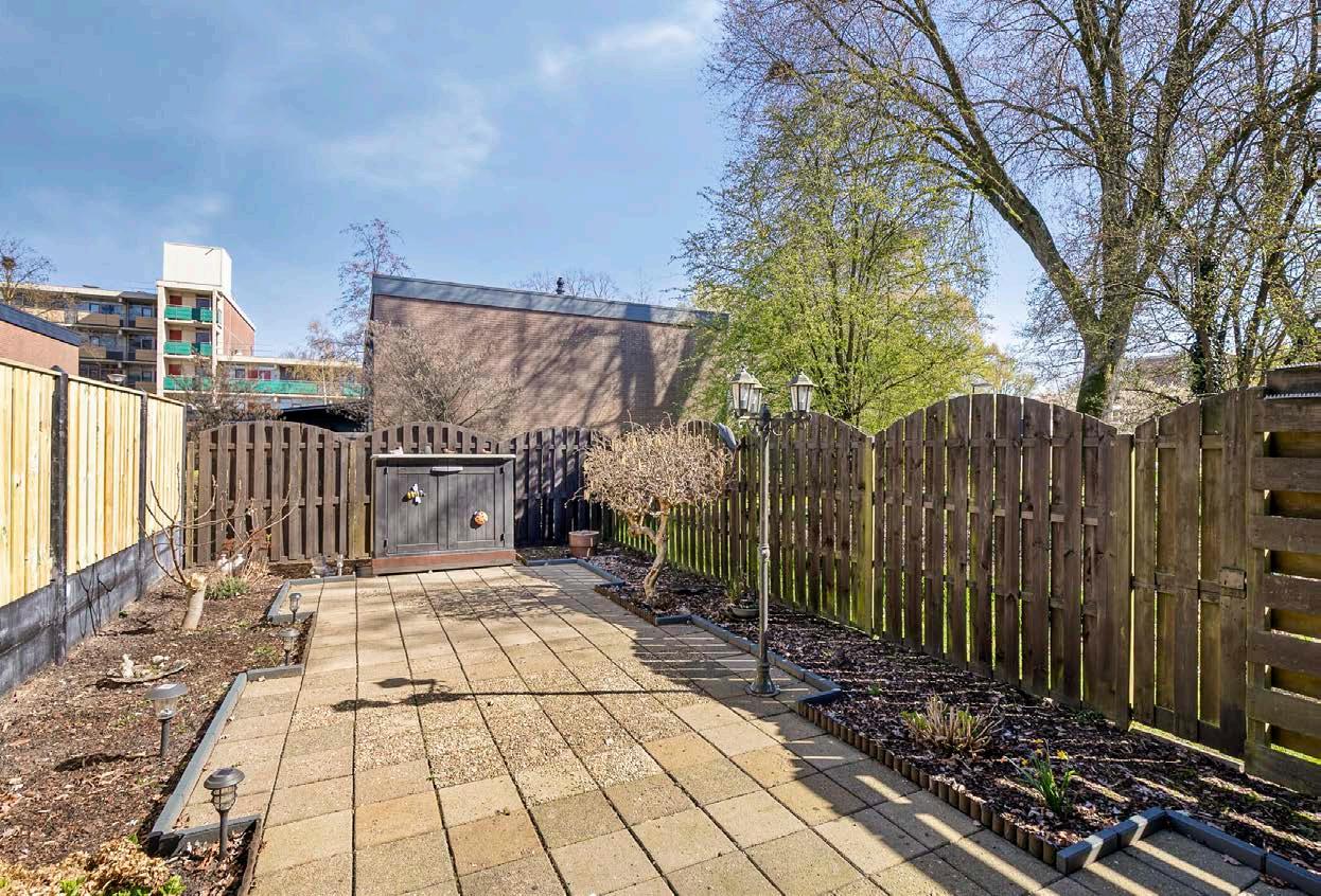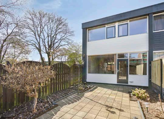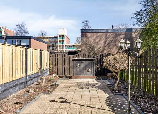 De buitenruimte is een groot pluspunt. De tuin ligt op het oosten, wat betekent dat je hier in de ochtend kunt genieten van de eerste zonnestralen, terwijl het in de middag ook nog heerlijk vertoeven is in de schaduw. Een fijne plek voor lange ontbijtsessies, spelende kinderen of om gewoon even tot rust te komen. Bovendien is er een handige schuur voor extra opslagruimte en toegang tot een achterom, ideaal voor fietsen of het uitladen van boodschappen.