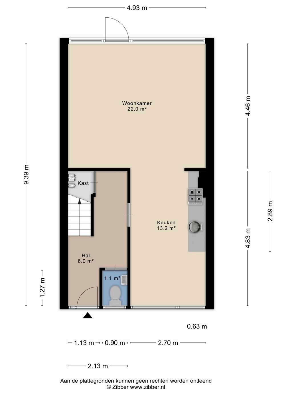 Bij binnenkomst word je begroet door een lichte entree met het toilet, de trap naar boven en de doorgang naar de woonkamer. De woonkamer biedt een fijne balans tussen gezelligheid en ruimte. De grote ramen aan de achterzijde zorgen voor een prettige lichtinval en een mooi uitzicht op de tuin. Aan de voorzijde bevindt zich de open keuken, de keuken is eenvoudig uitgevoerd en is naar eigen smaak in te richten.