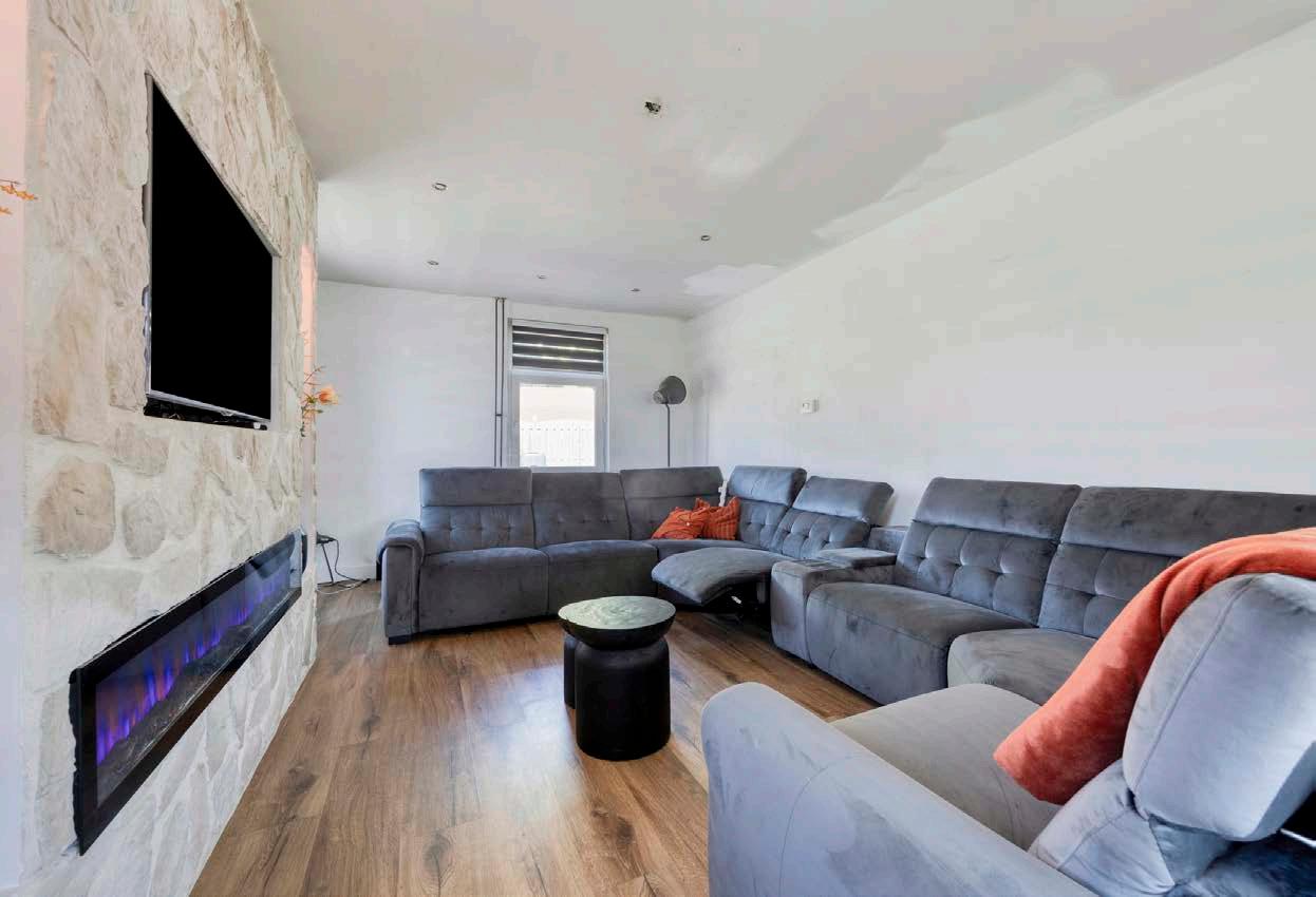 De woonkamer is het kloppende hart van dit huis. De strakke, neutrale afwerking vormt een rustige basis, ideaal om jouw eigen woonwensen tot leven te brengen. De grote ramen zorgen voor een zee aan natuurlijk licht en laten de ruimte nóg groter aanvoelen. Denk je het al voor je? Een gezellige hoekbank, jouw favoriete planten en dat ene kunstwerk waar je al zo lang naar uitkijkt. Alles past hier!