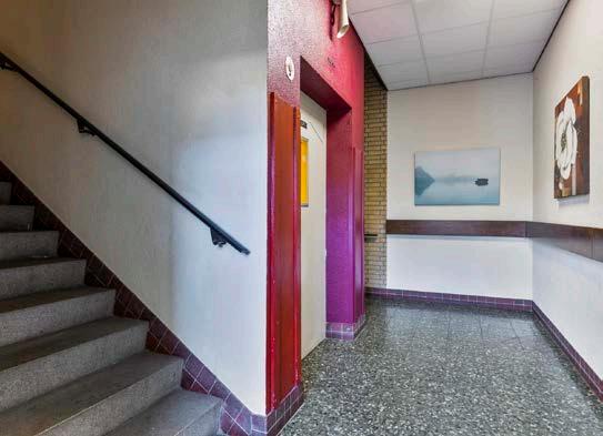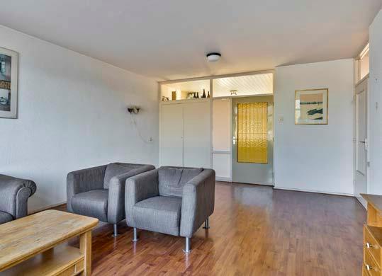 In de centrale hal op de begane grond met trapopgang, lift en postkasten. In het ondergelegen souterrain bevinden zich de gezamenlijke fietsenstalling en berging. Via de trapopgang of de lift bereik je de eerste woonlaag waar het appartement ligt gelegen. De hal is van prima formaat, waardoor je hier rustig de schoenen en jassen uit doet. We lopen meteen door naar de woonkamer.