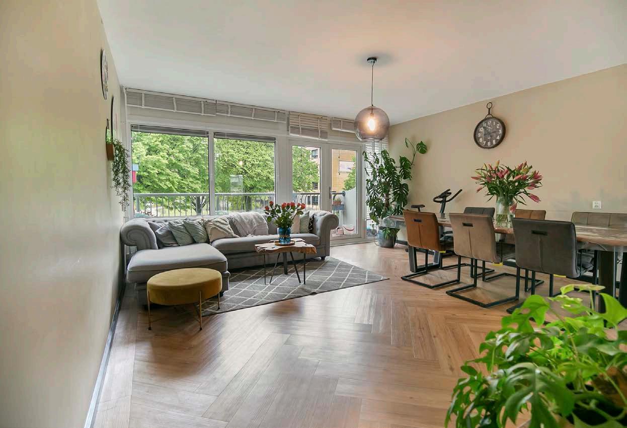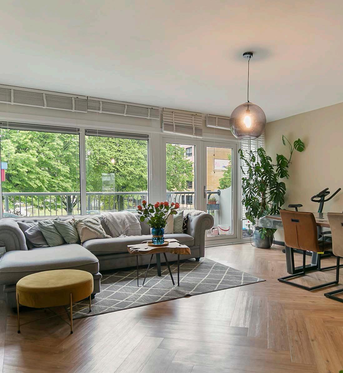 De woonkamer beschikt over grote ramen en dus veel lichtinval, waardoor een warme en uitnodigende sfeer ontstaat. De ruimte is perfect om te ontspannen na een lange dag, te genieten van gezellige avonden met vrienden, of simpelweg om een goed boek te lezen.