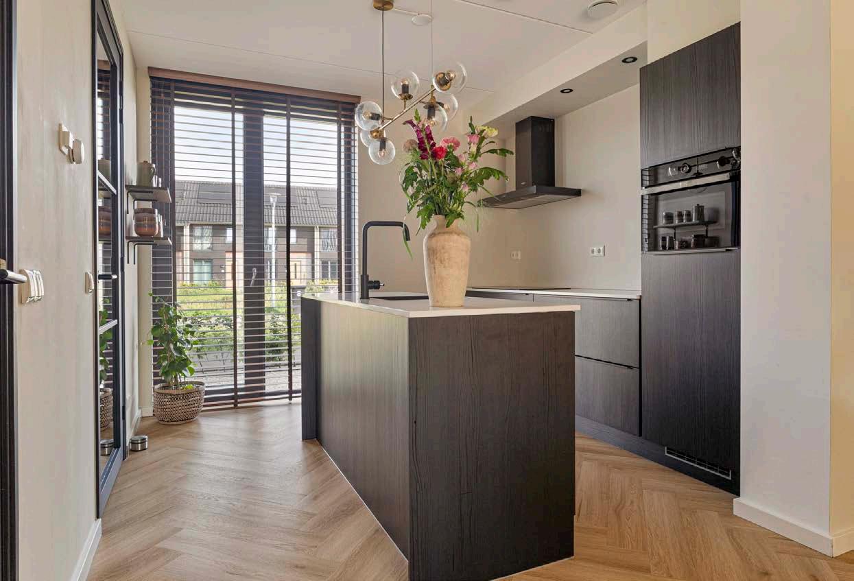 De open keuken is voorzien een kookeiland en diverse inbouwapparatuur met een inductiekookplaat, oven. Hier kun je met plezier maaltijden bereiden.