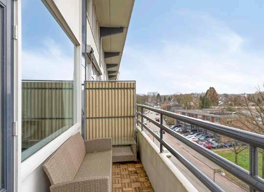 De glazen deur naar het balkon vormt de goede verbinding met buiten. Hier, op het westelijk gelegen balkon, kun je optimaal genieten van de middagzon.