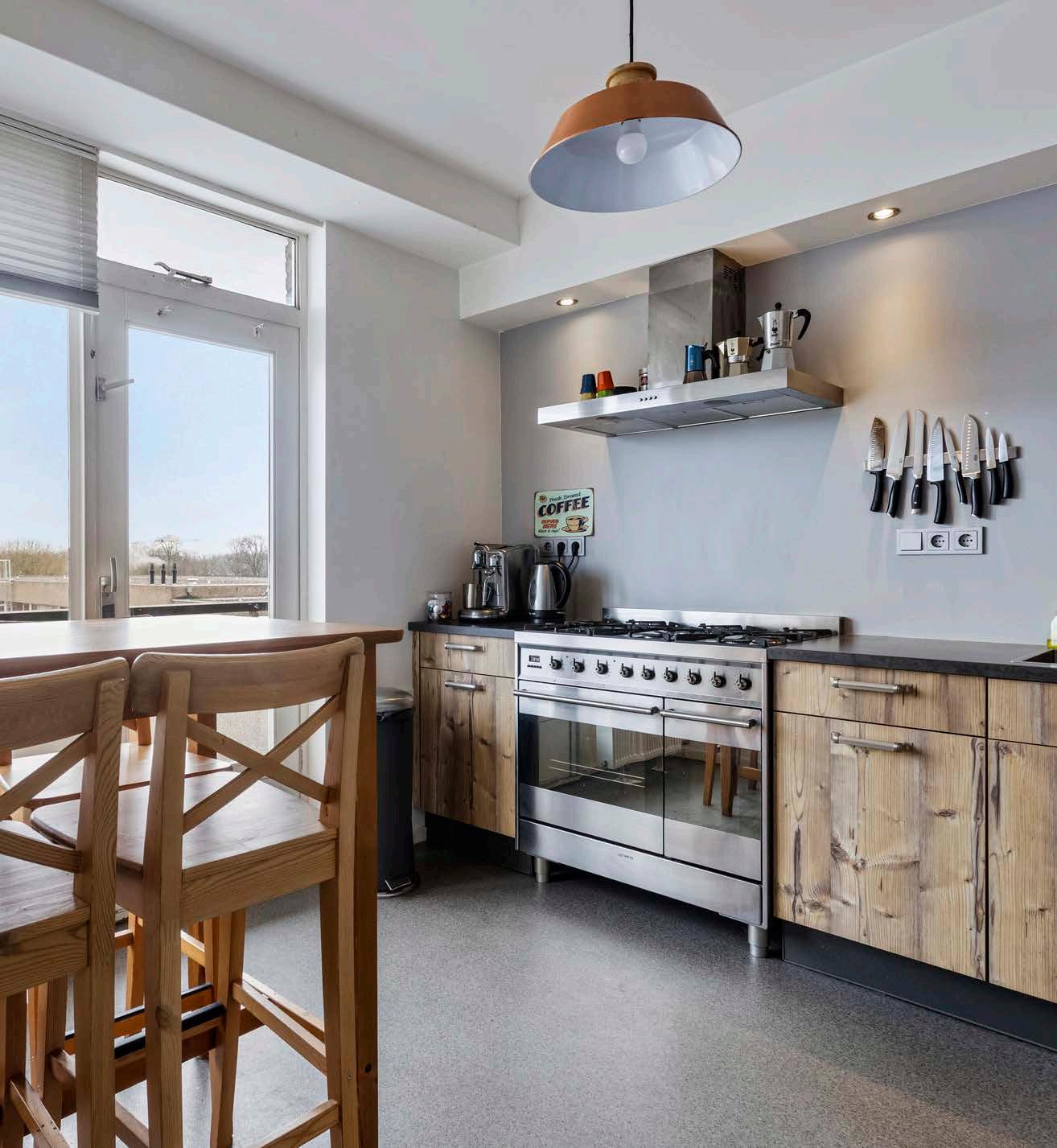 De keuken is niet alleen functioneel maar ook stijlvol, met hoogwaardige apparatuur die elke kookervaring een plezier maakt. Vanuit de keuken stap je zo het balkon op.