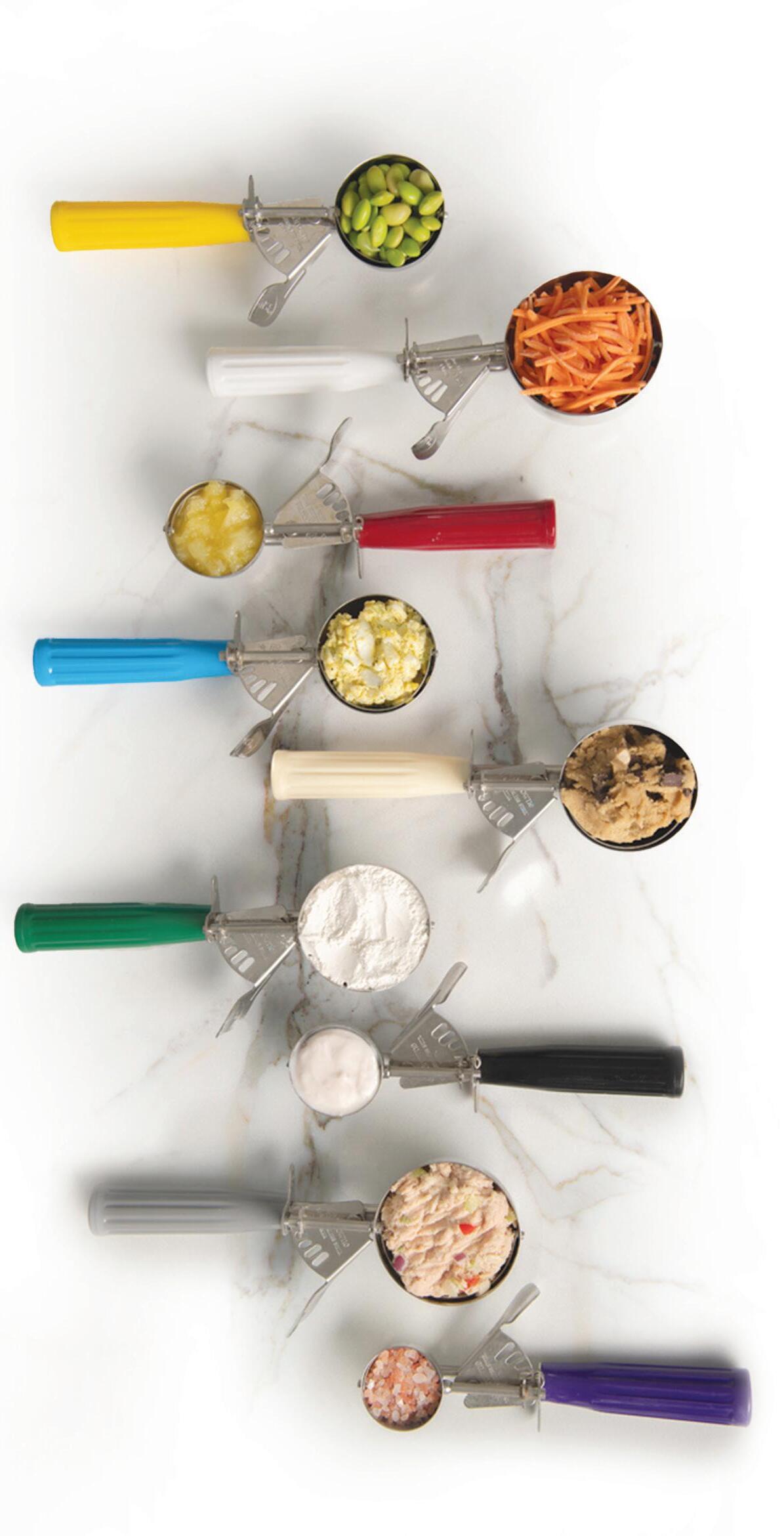 Offer expires November 30, 2023. Product selection may vary by store. Original prices (NSP) are Russell Hendrix national sell prices. We reserve the right to limit quantities, correct typographical, illustrative or pricing errors. Taxes, fees and shipping not included. First in foodservice equipment & supplies. russellhendrix.com NOVEMBER 2023 Perfect for accurate portioning of softer foods like rice, cookie dough, and mashed potatoes. Handles are colour-coded for easy size identification and sized are stamped on the blade for quick reference.
