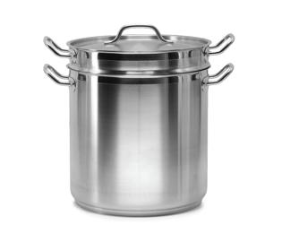20 QT Stainless Steel Double Boiler w/ Insert Stainless Steel cookware with an aluminum core for excellent heat conductivity. “Stay Cool” hollow cast handles. NSF certified. 11-3/4” Dia.