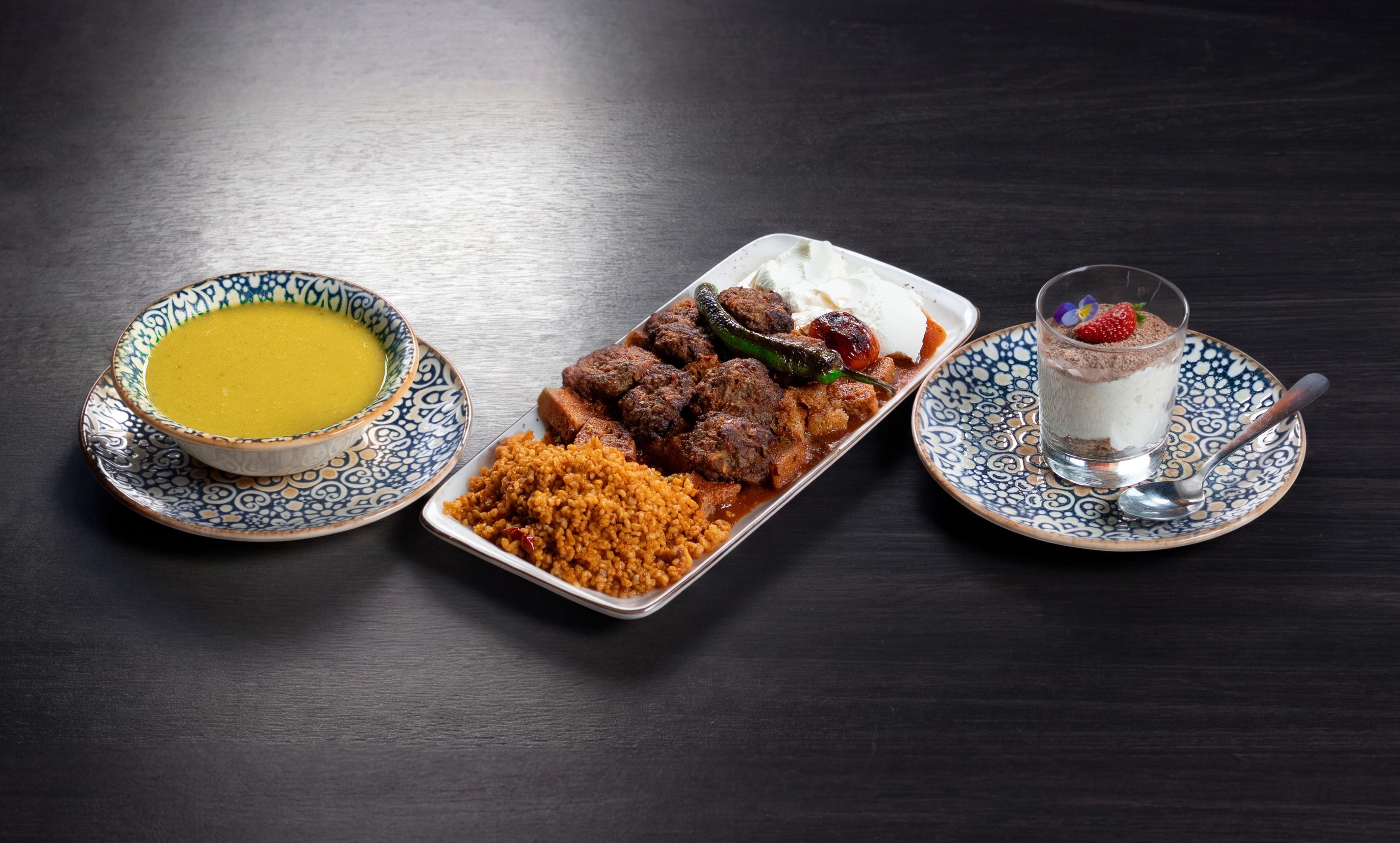 Saftige grillede kjøttboller servert på biter av mykt pitabrød, toppet med varm tomatsaus og yoghurt.