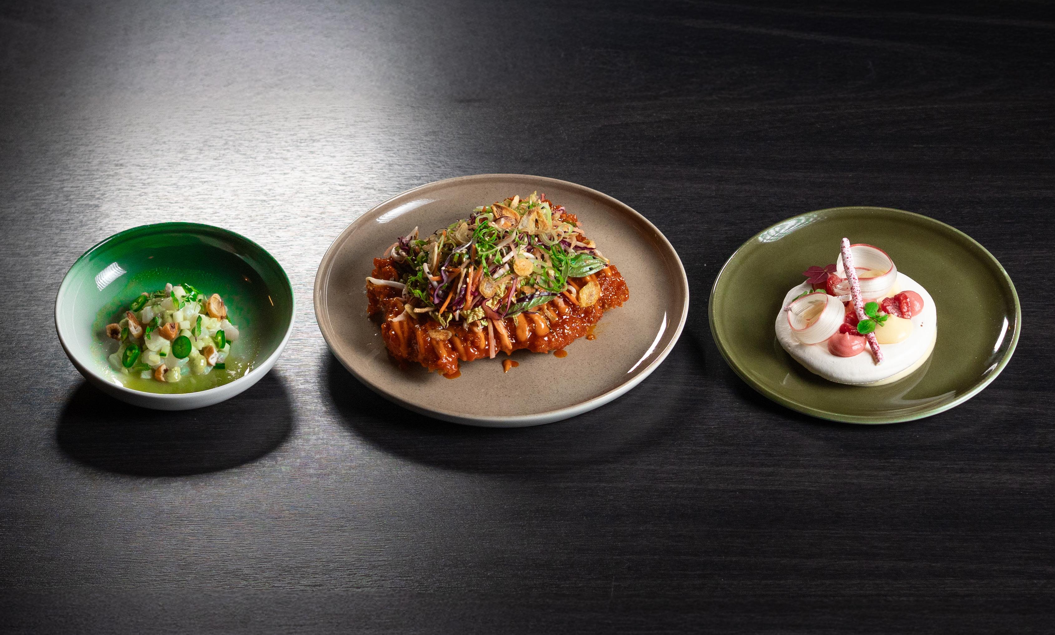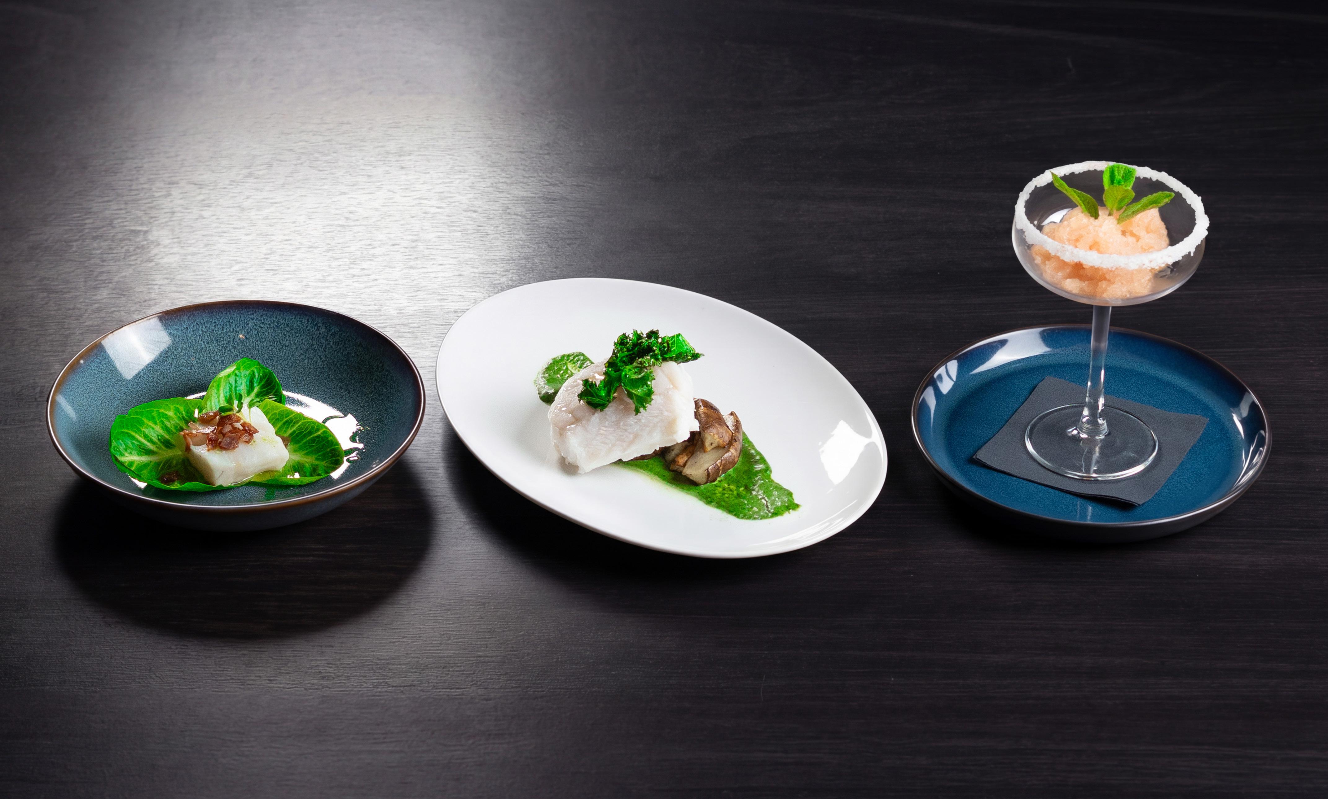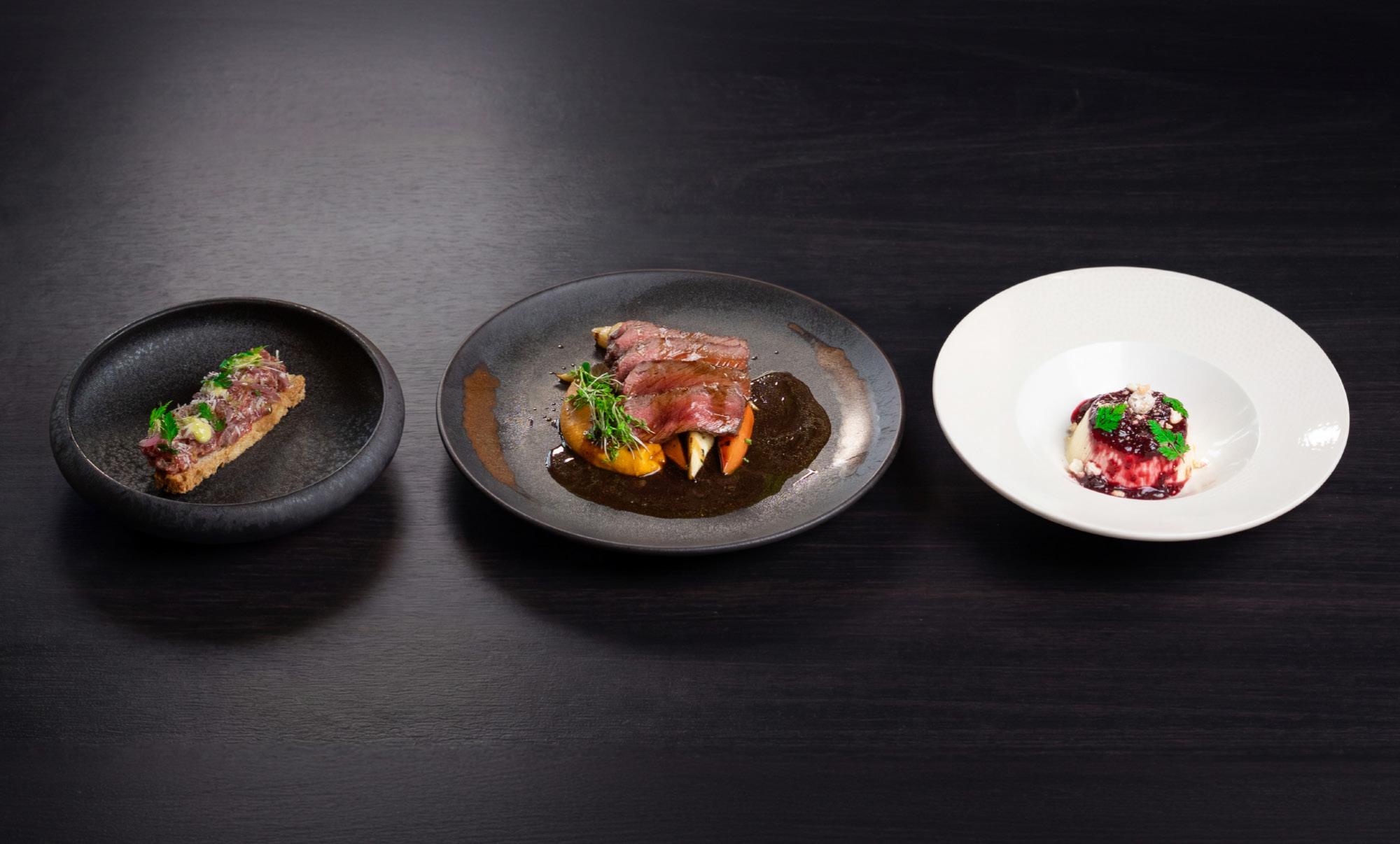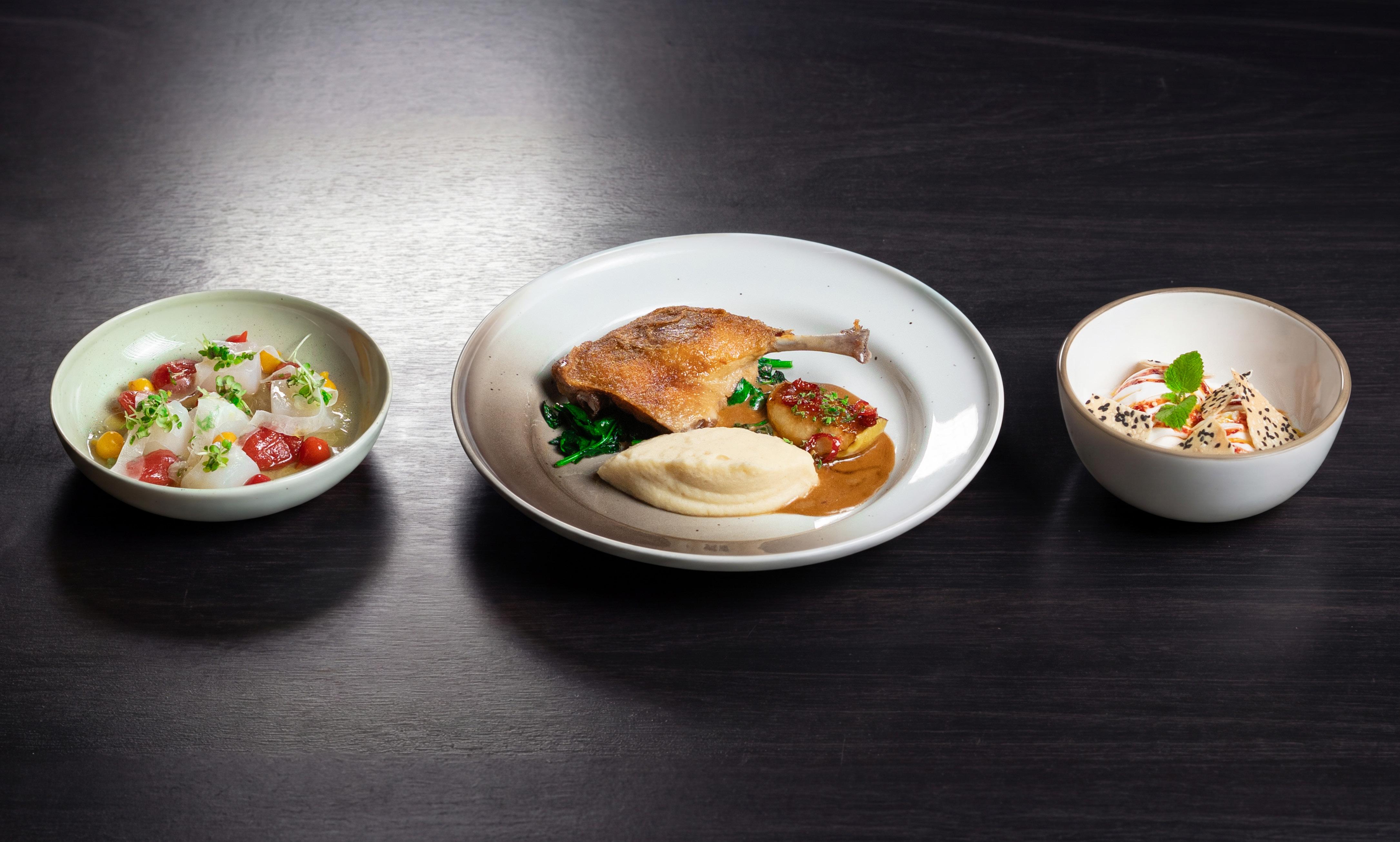 Merk at vi denne gangen serverer en tre-retters meny uten dessert – bestående av forrett, mellomrett og hovedrett.