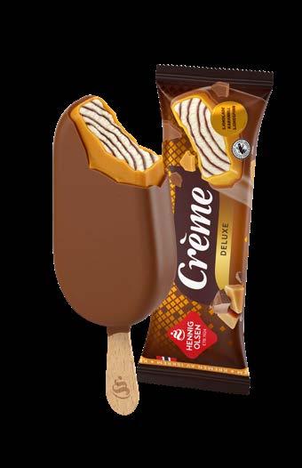 Karamellis med karamellsaus vaffelkjeks med sjokotrekk, toppet med melkesjokolade.