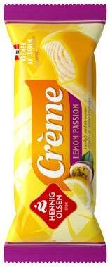 Crème Lemon Passion – en fyldig vaniljeis med syrlig sitronsaus dyppet i en tropisk eksplosjon.