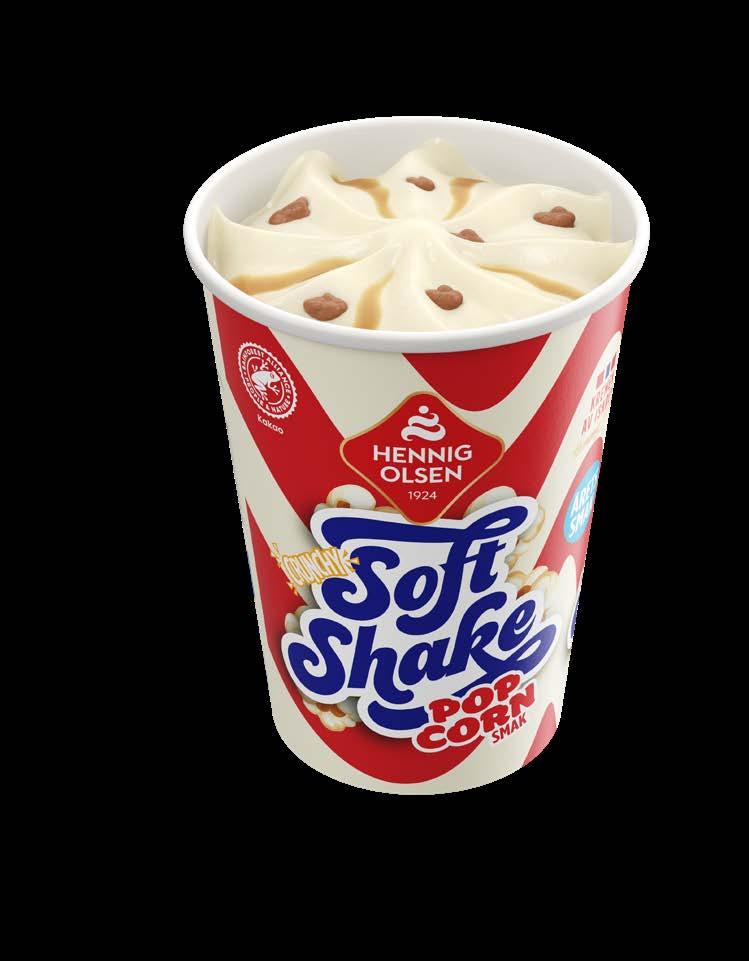 Soft Shake Popcorn - Årets gøyeste nyhet i isdisken er en leken variant med popcornsmak, popcornsaus og sprø, sjokoladetrukne maisbiter i beger!