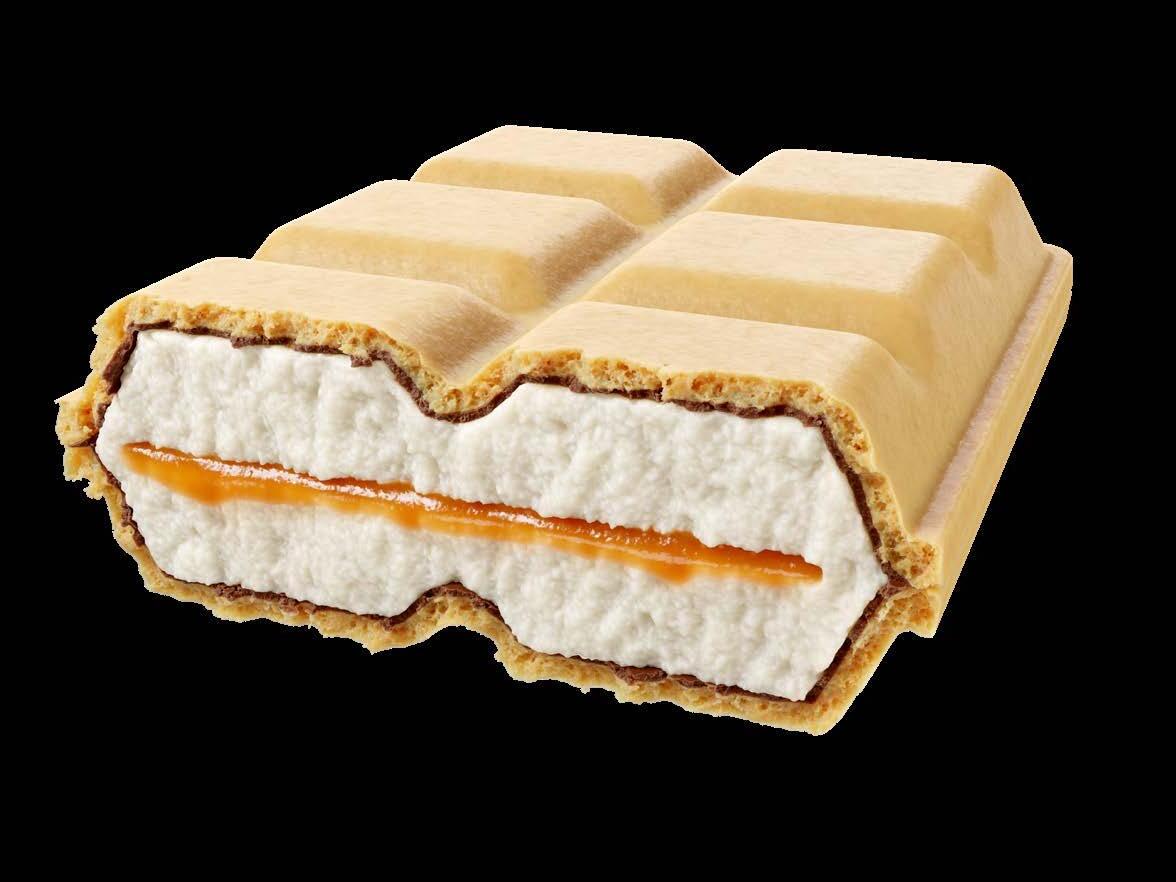 En ny spiseopplevelse for iskrem som kombinerer kremet fløteis med flytende karamellkjerne – alt omsluttet av kjeks.