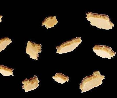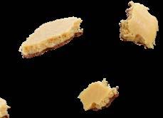 Hennig Olsens hjemmelaget ekte krokan. Selges frossent. Brukes som strøssel til softis, iskrem og andre desserter.