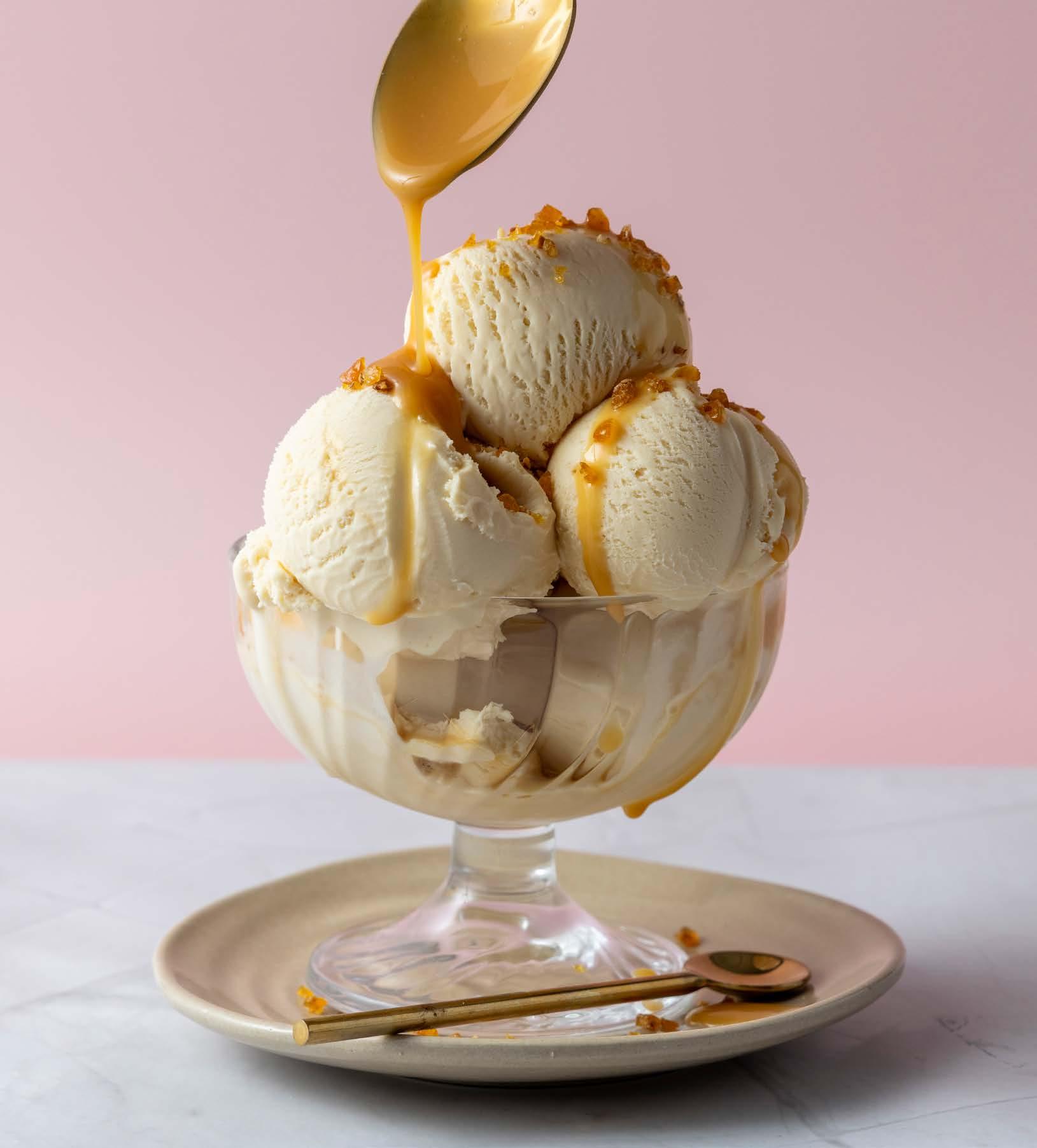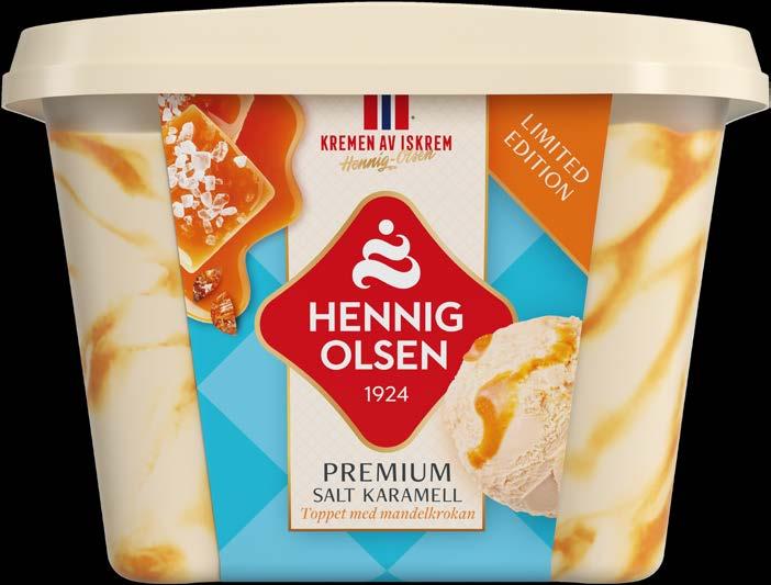 Hennig-Olsens beste karamellis, blandet med vår egen salte karamellsaus, og toppet med biter av mandelkrokan.