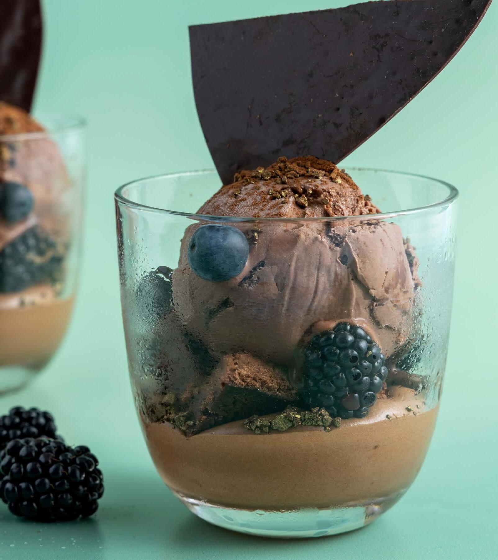 Kremet sjokoladeis med sjokoladesaus, dyppet i vår egen melkesjokolade og toppet med deilige browniebiter. En fristelse for alle sjokoladeelskere.