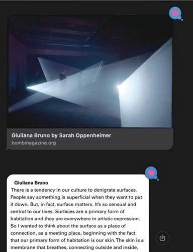 For the most part, what you’ll read here is the transcription of our dialogue, edited down to accommodate spatial constraints. We collected these transcripts in a vast Google Doc, which became a sort of ecosystem of thought; growing, alive, entangled. We embellished the doc with screenshots of our text conversations over the past year or so, plus