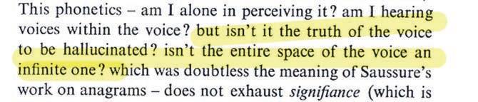 And then I wanted to say one more thing about voice memos. Your exhibition is dealing a lot with excess… aurality and orality carry a kind of Baroque excess and exorbitance that writing maybe does not and part of that is maybe related to what I was saying in my other voice memo about Barthes grain of the voice and the infinitude that is contained therein.