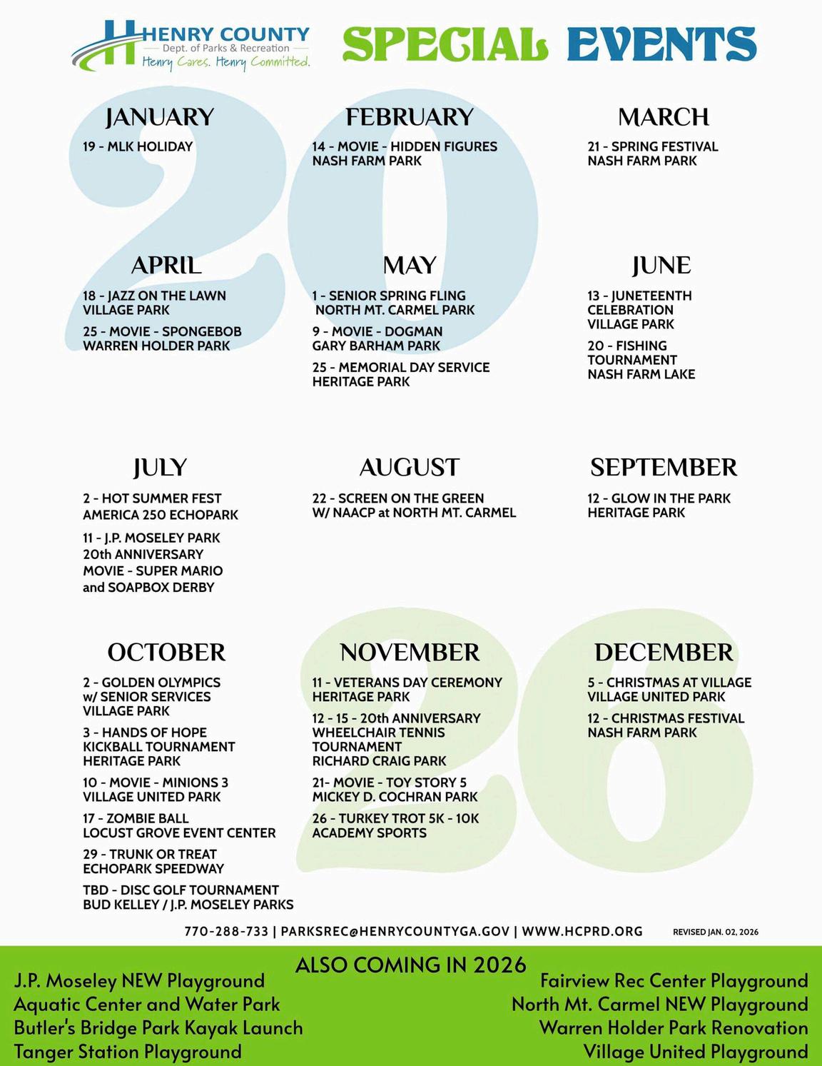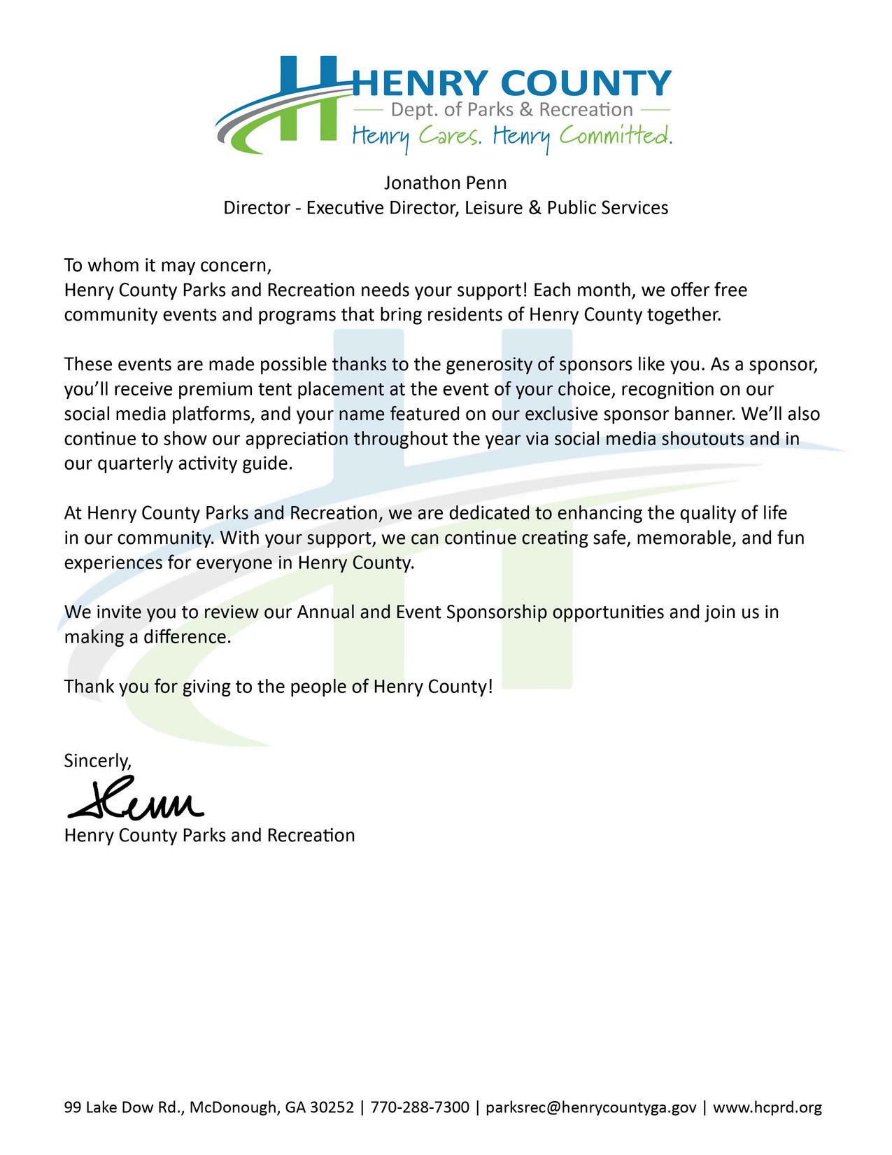 Quarterly recognition in the Parks and Recreation Quarterly Program Guide (email blast to 13,000+ Henry County residents).