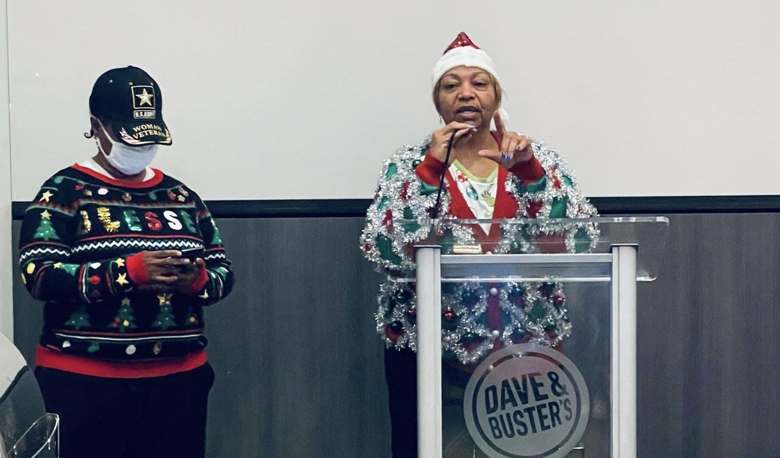 Chair Carlotta Harrell Hosts Second Annual Ugly Sweater Christmas Party/ Toy Drive