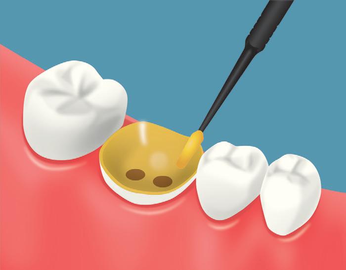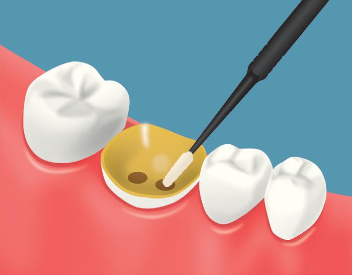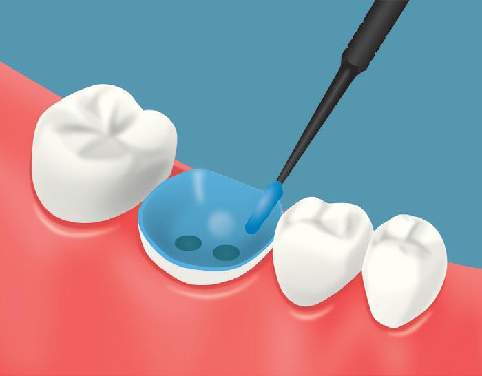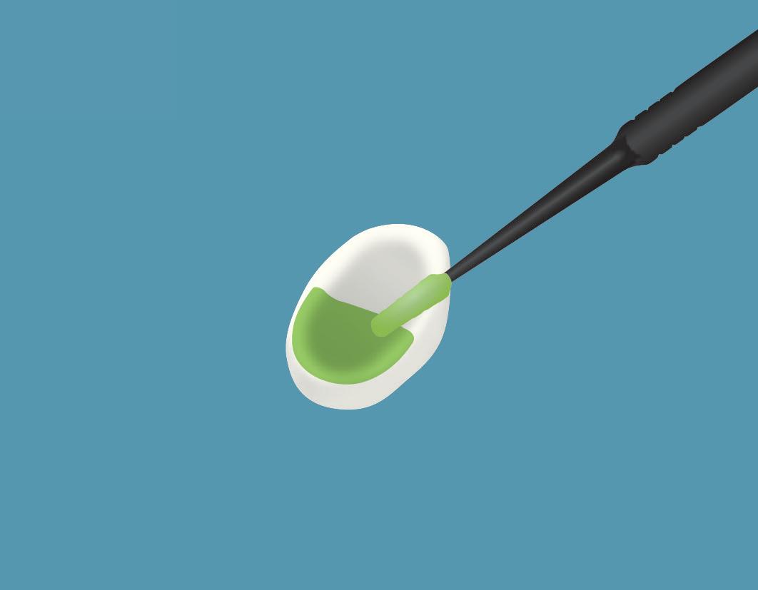 Conditioning the core buildup composite resin surface. Apply the paste over the adherent surface of the core or into the cavity.