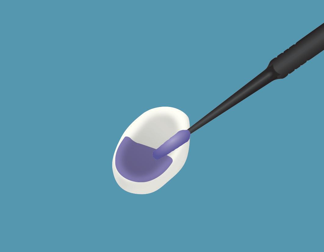 *2 Use a cotton pellet to carefully remove any excess ED PRIMER Ⅱ from the cavity or abutment, especially from the corners of the cavity and shoulders at the margins of the abutment.