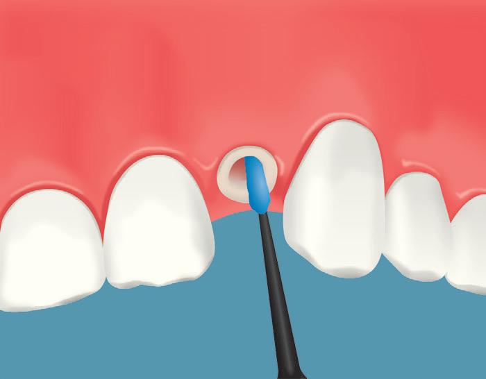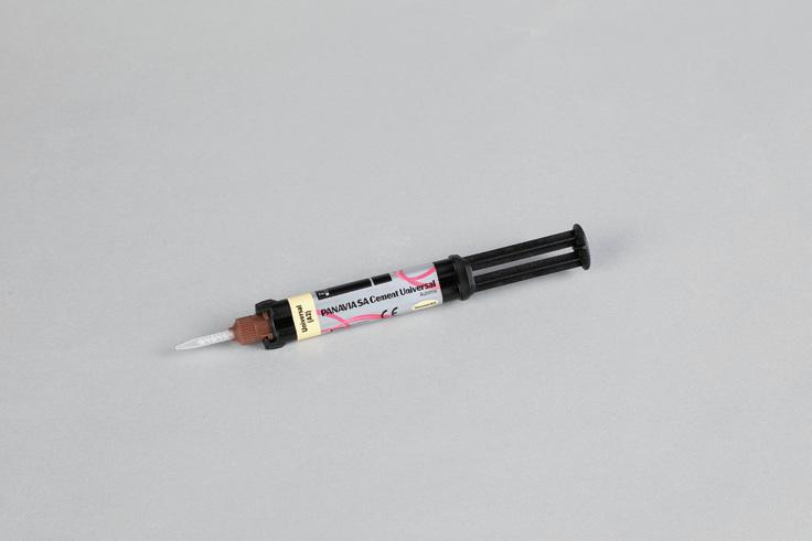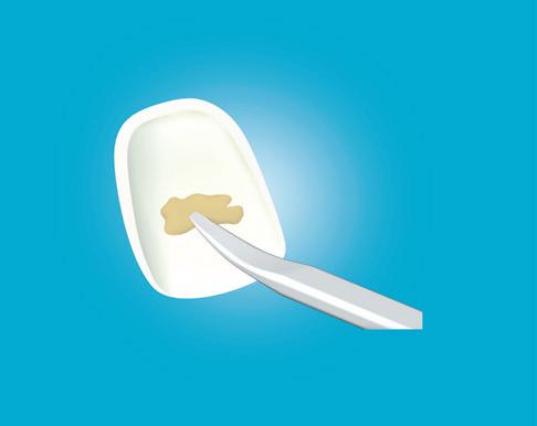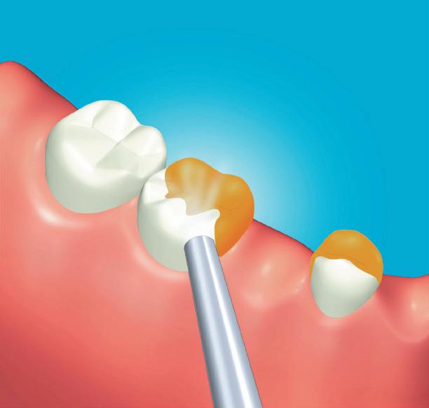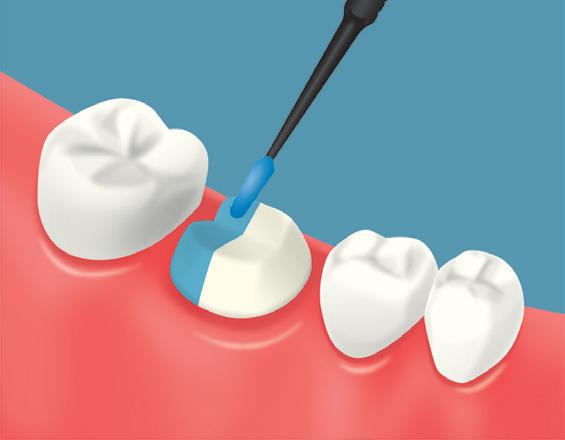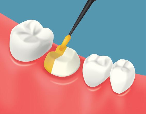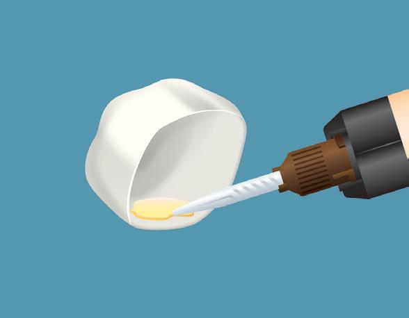 Apply the mixture entirely to 10 Cement the restoration to the abutment surface and remove the excess paste.