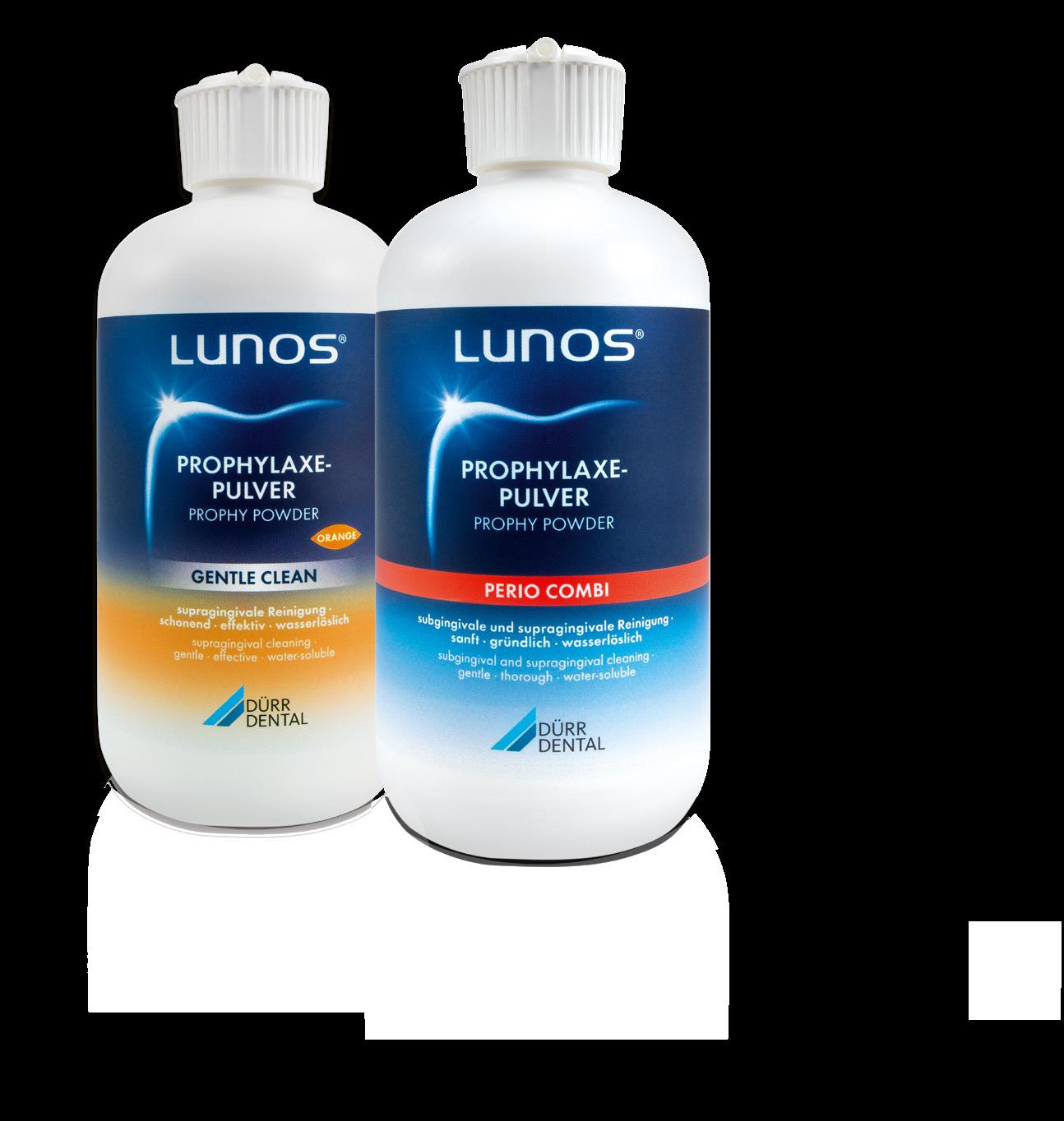 • Innovative abrasive agent trehalose • Best water solubility • Ergonomic bottle with a single-hand flip-spout cap POWERFUL YET GENTLE: LUNOS® POWDERS