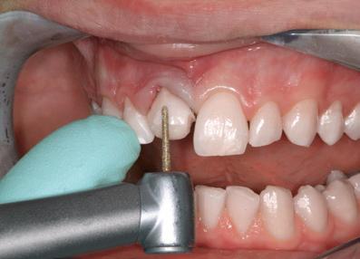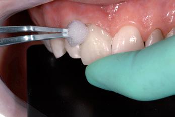 Cementation of the final crown with excess ParaCore material being removed afterwards. Postoperative