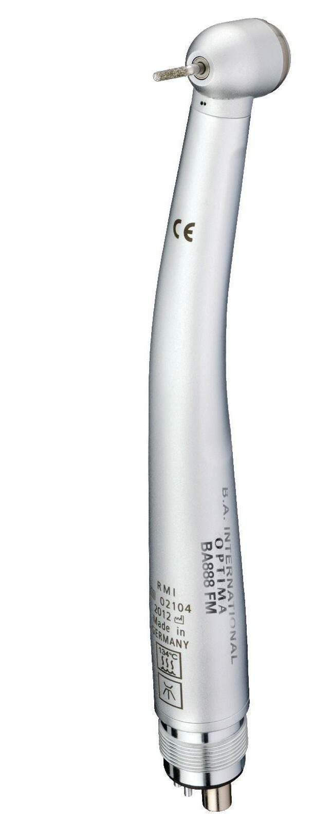 BA Optima fixed base turbine. Chrome-plated with superior grip, push button chuck and up to 17W power. Ceramic bearings