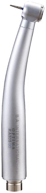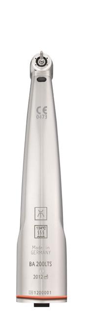 Ergonomically designed, 1:5 speed-increasing contra-angle handpiece with internal spray and light.