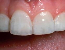 Other types of stains can penetrate into enamel and dentin from the inside, as a consequence of diseases, injury or medical treatment, e.g. congenital, systemic, metabolic, pharmacological, traumatic, or iatrogenic factors such as dental fluorosis, jaundice, tetracycline, and adult minocy-cline stains, porphyria, trauma, and erythroblastosis fetalis. To treat staining from these causes, a medical, in-office whitening system is needed. In many cases such focused whitening may make restorations, veneers or crowns unnecessary or postpone them for a long time.
