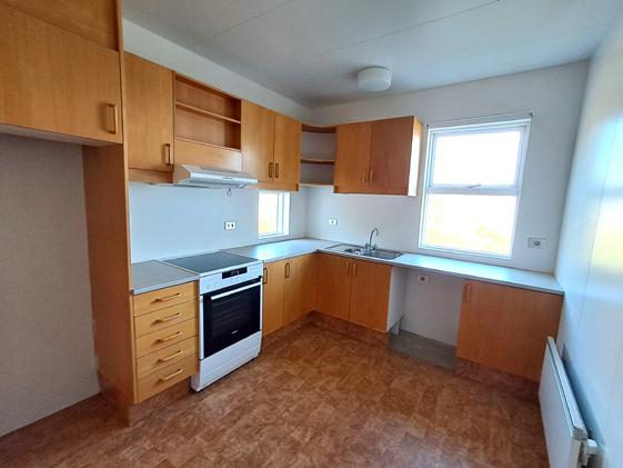 Góður pallur, ott baðherbergi, stórt alrými með stórri eldhúsinnréttingu. 2 svefnherbergi.