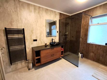 Mjög flott íbúð (181,5 m²) með bílskúr, fjórum rúmgóðum svefnherbergjum, baðherbergi flísalagt í hólf og gólf og rúmgóð stofa með útgengt á hellulagða verönd í garði.