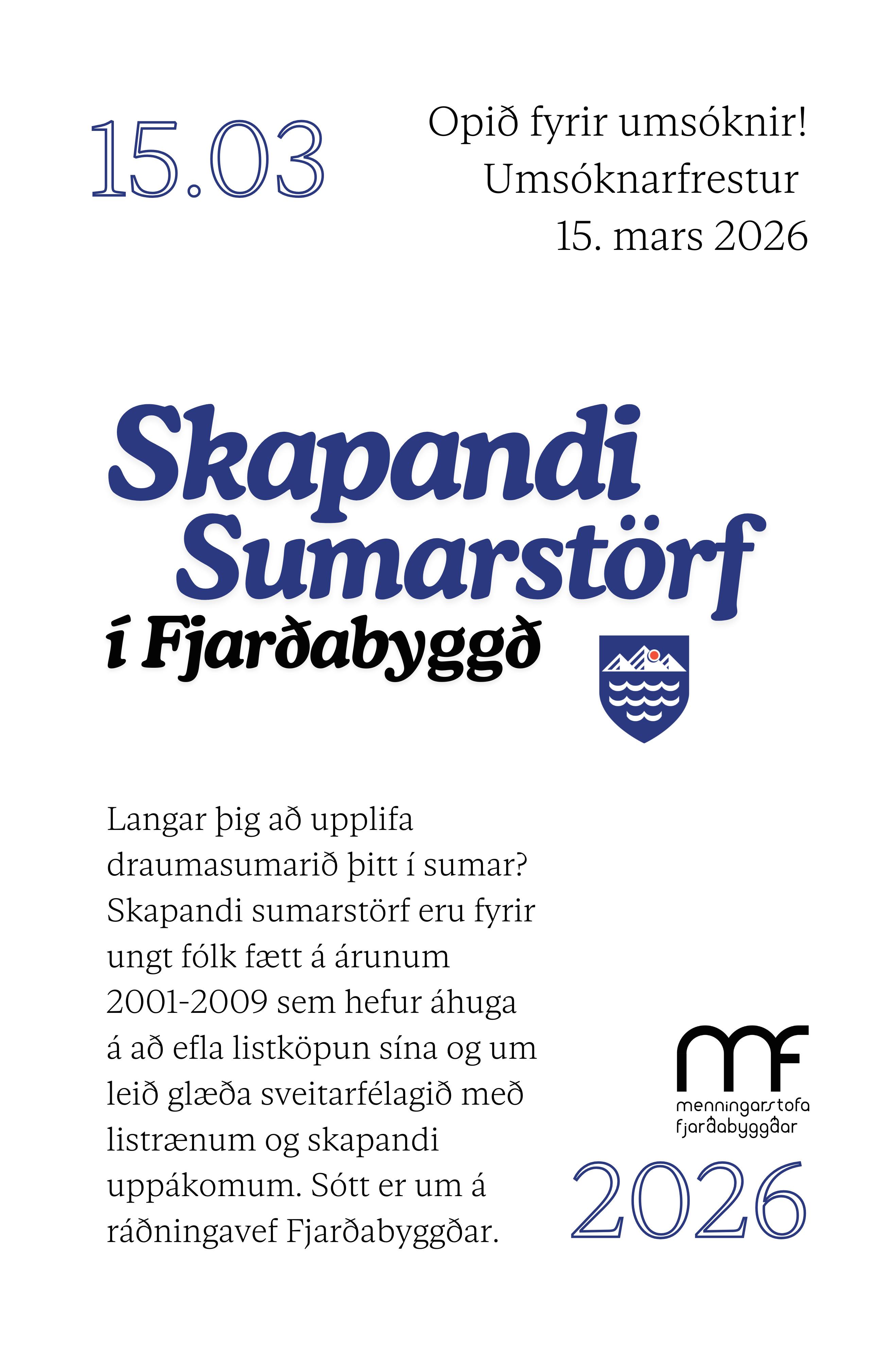 Nánari upplýsingar eru að finna á heimasíðu Fjarðabyggðar og samfélagsmiðlum Menningarstofu.