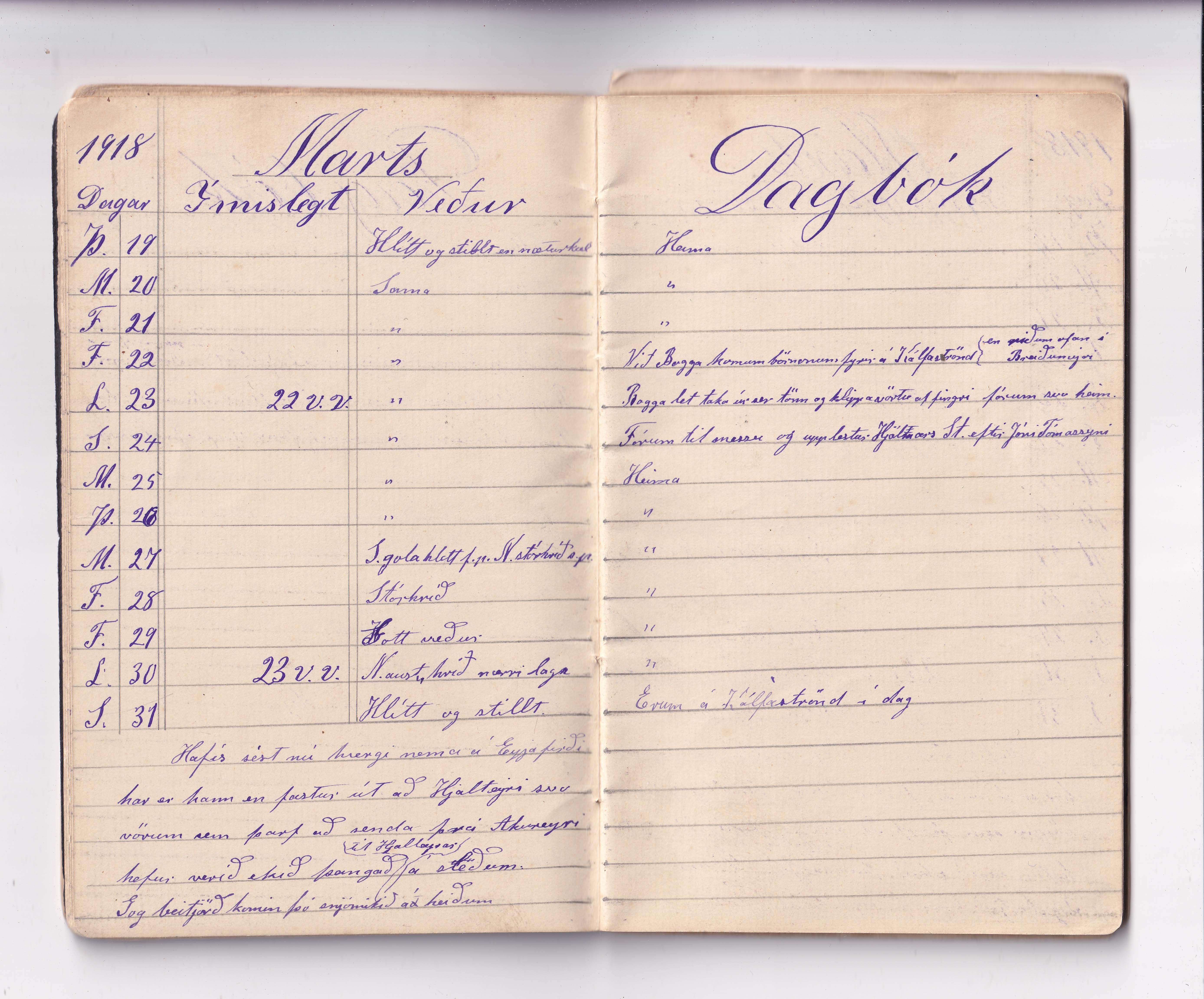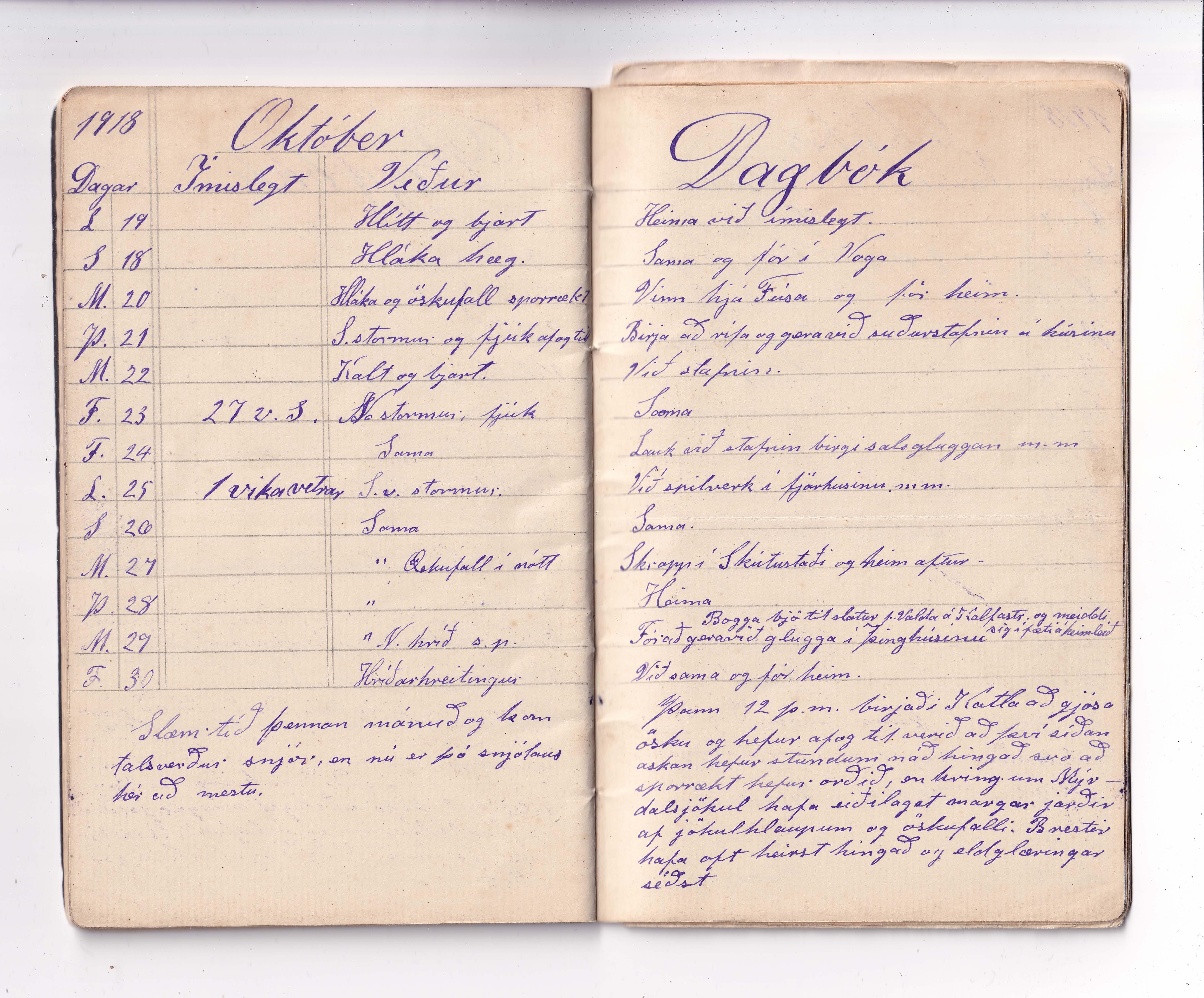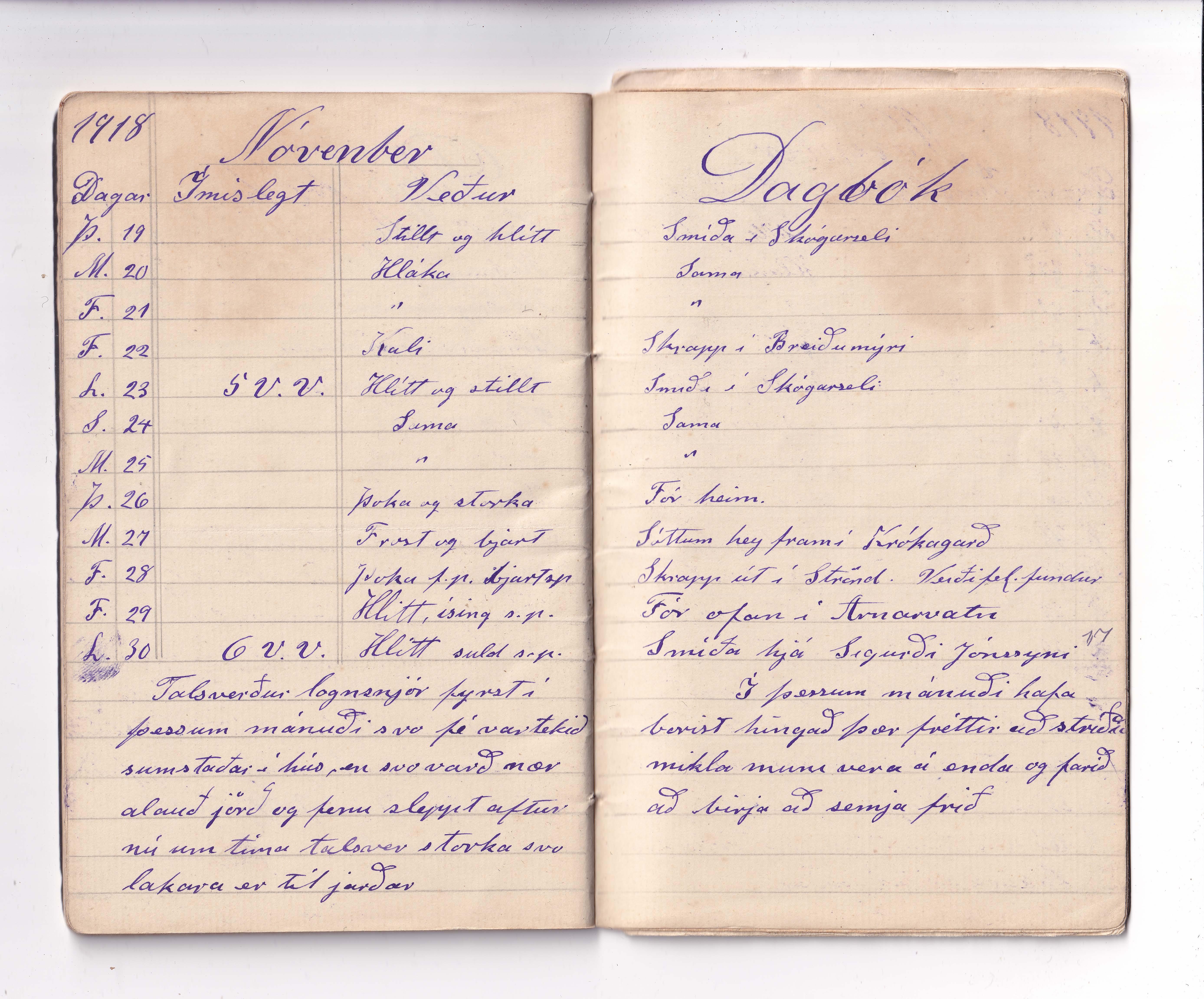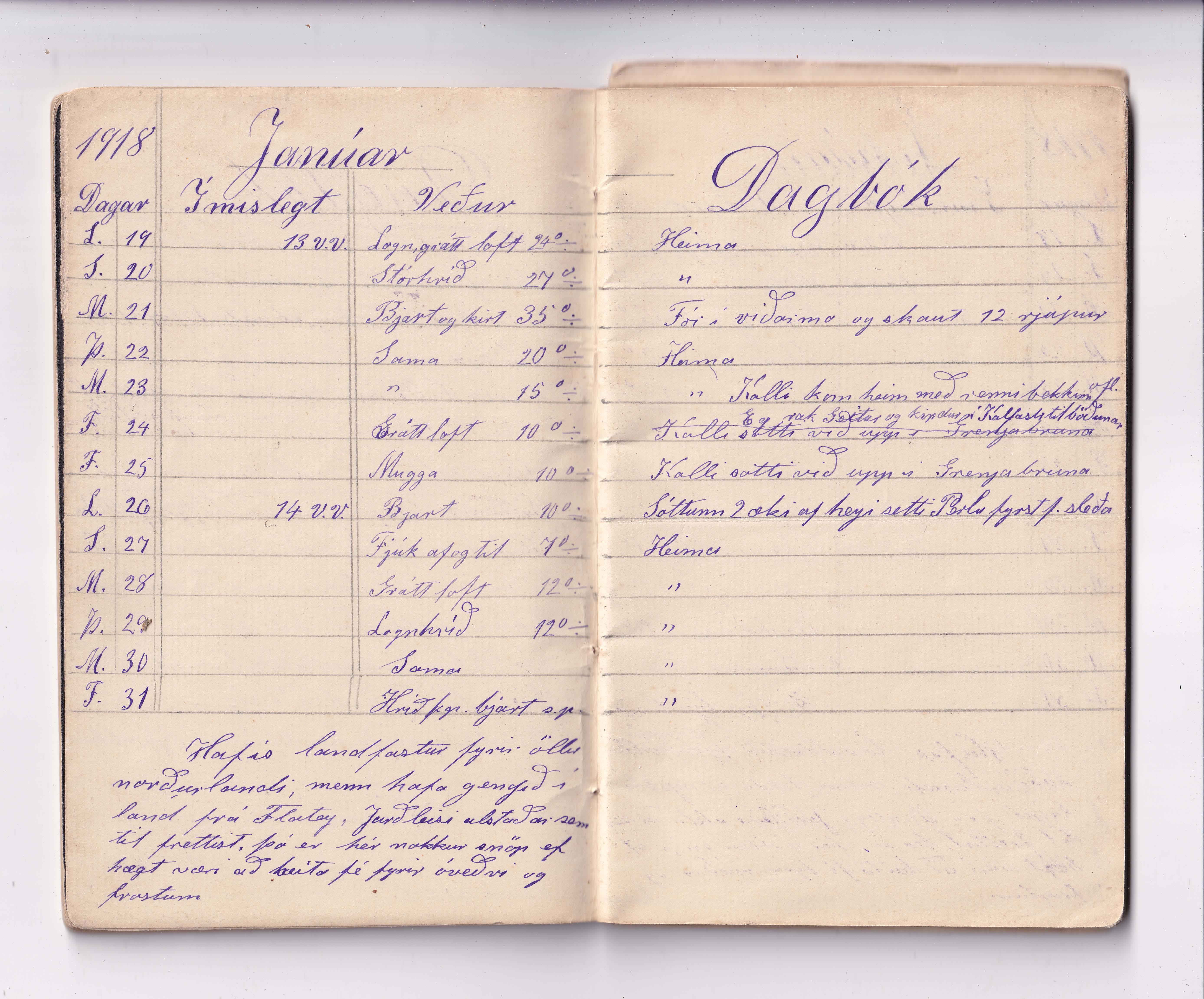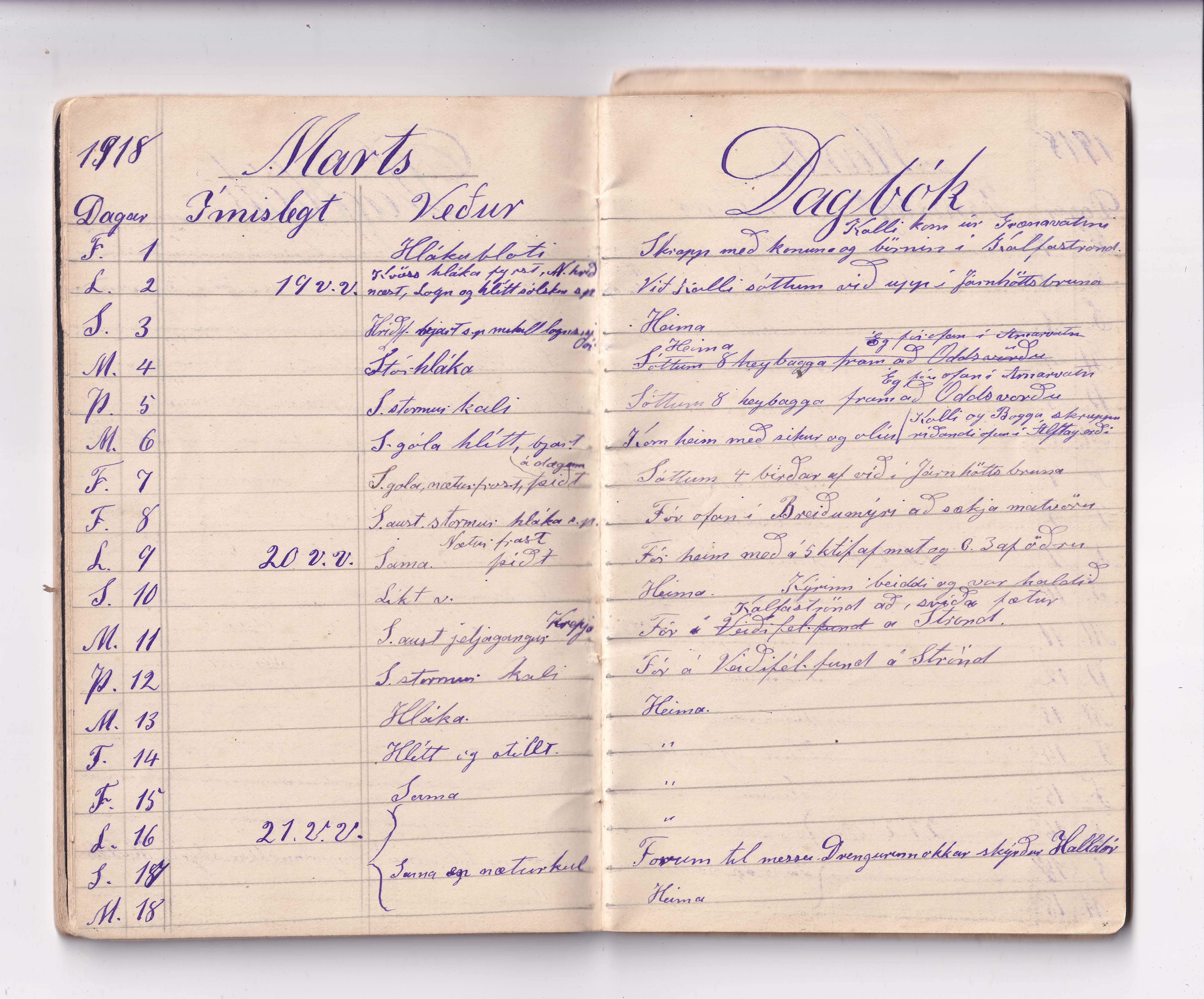 Bárður Sigurðsson. Dagbók 1918-1919.