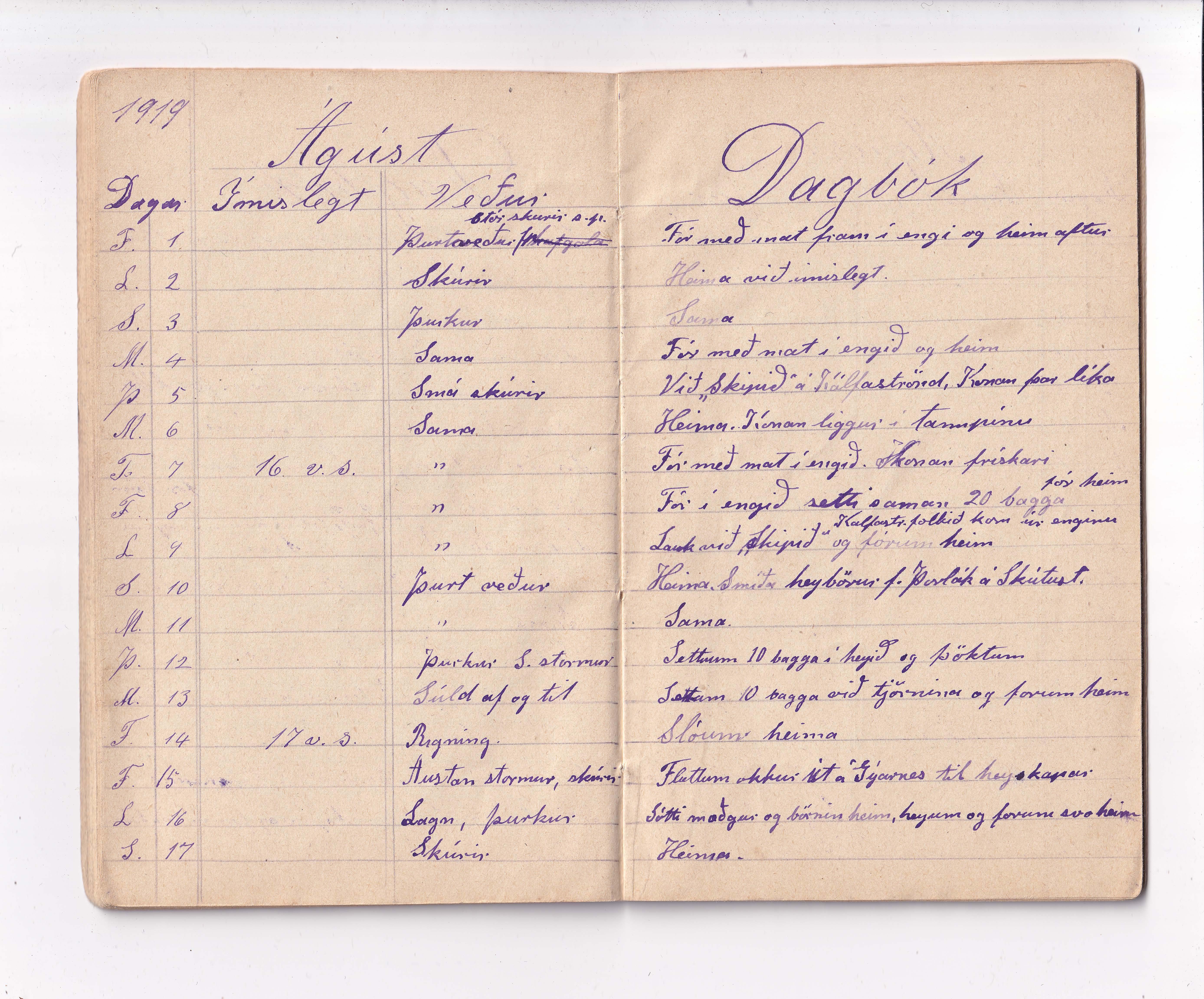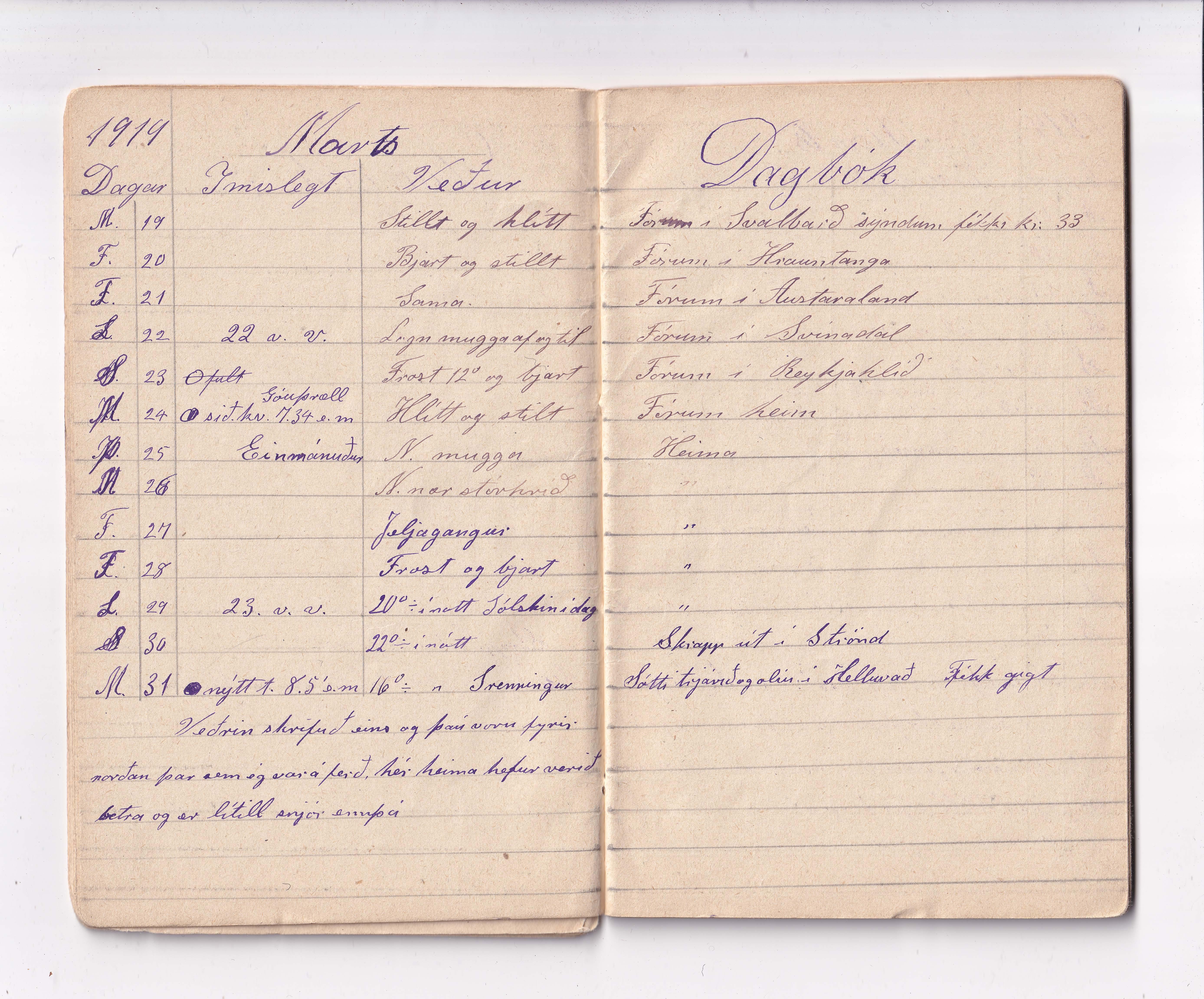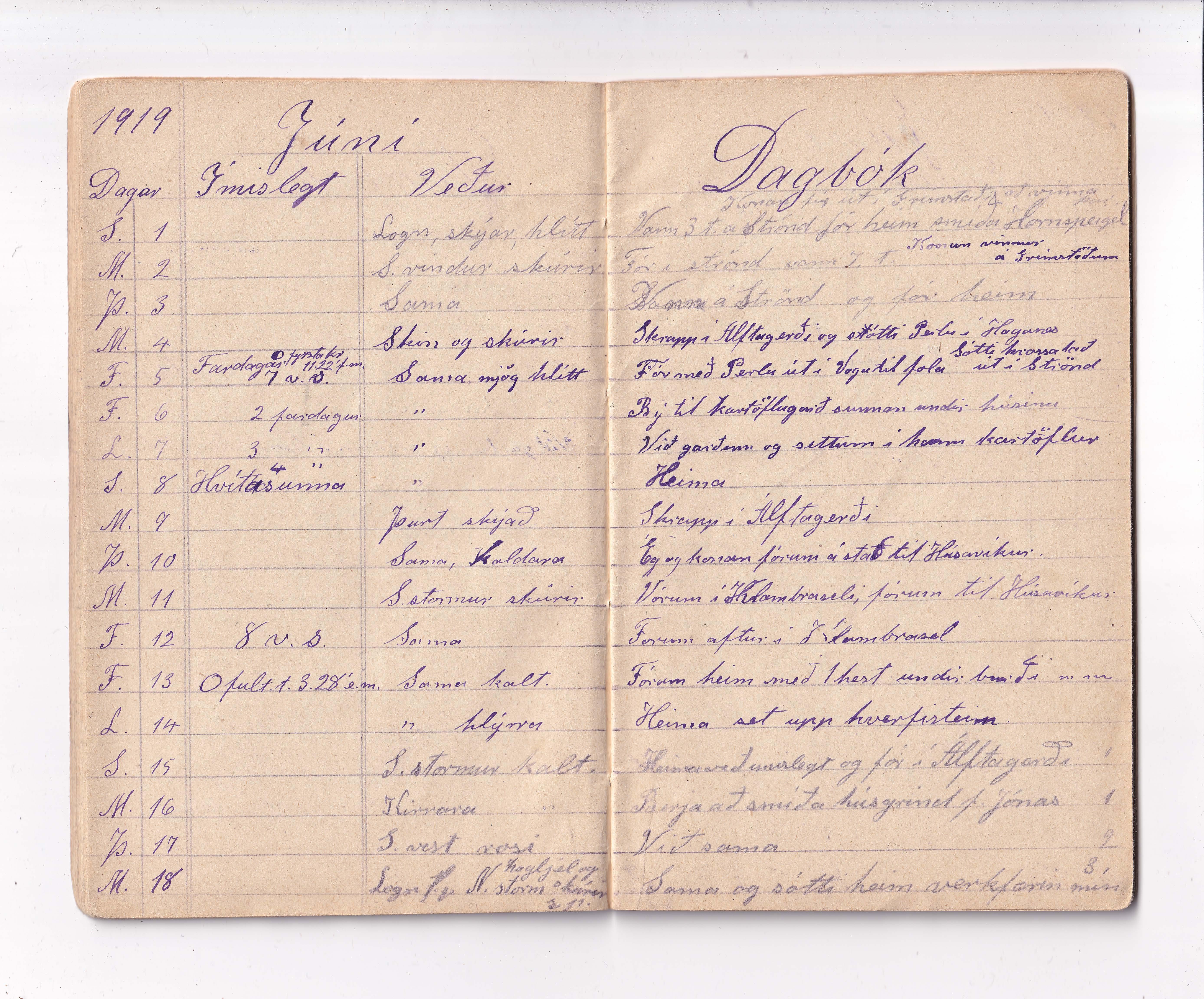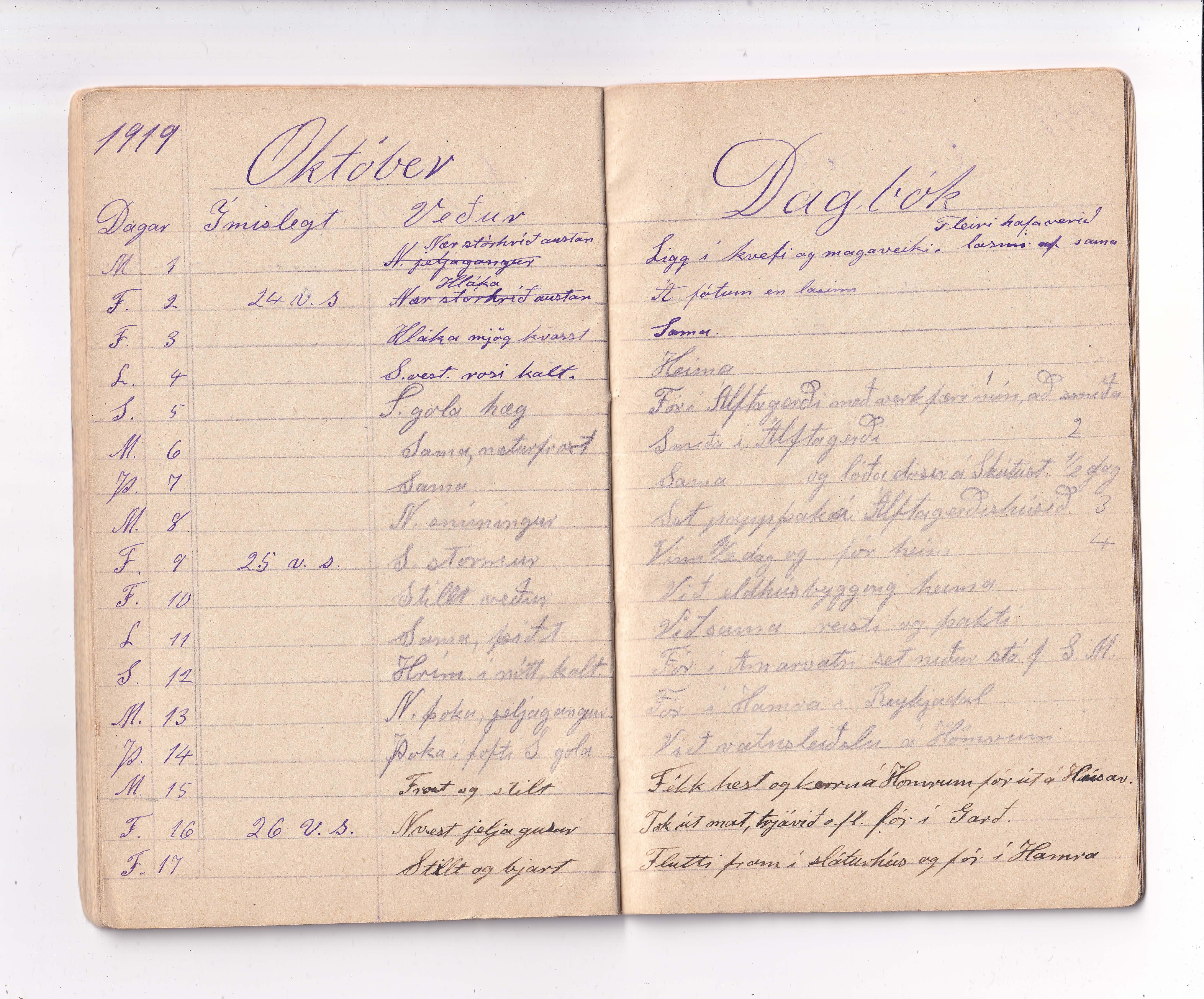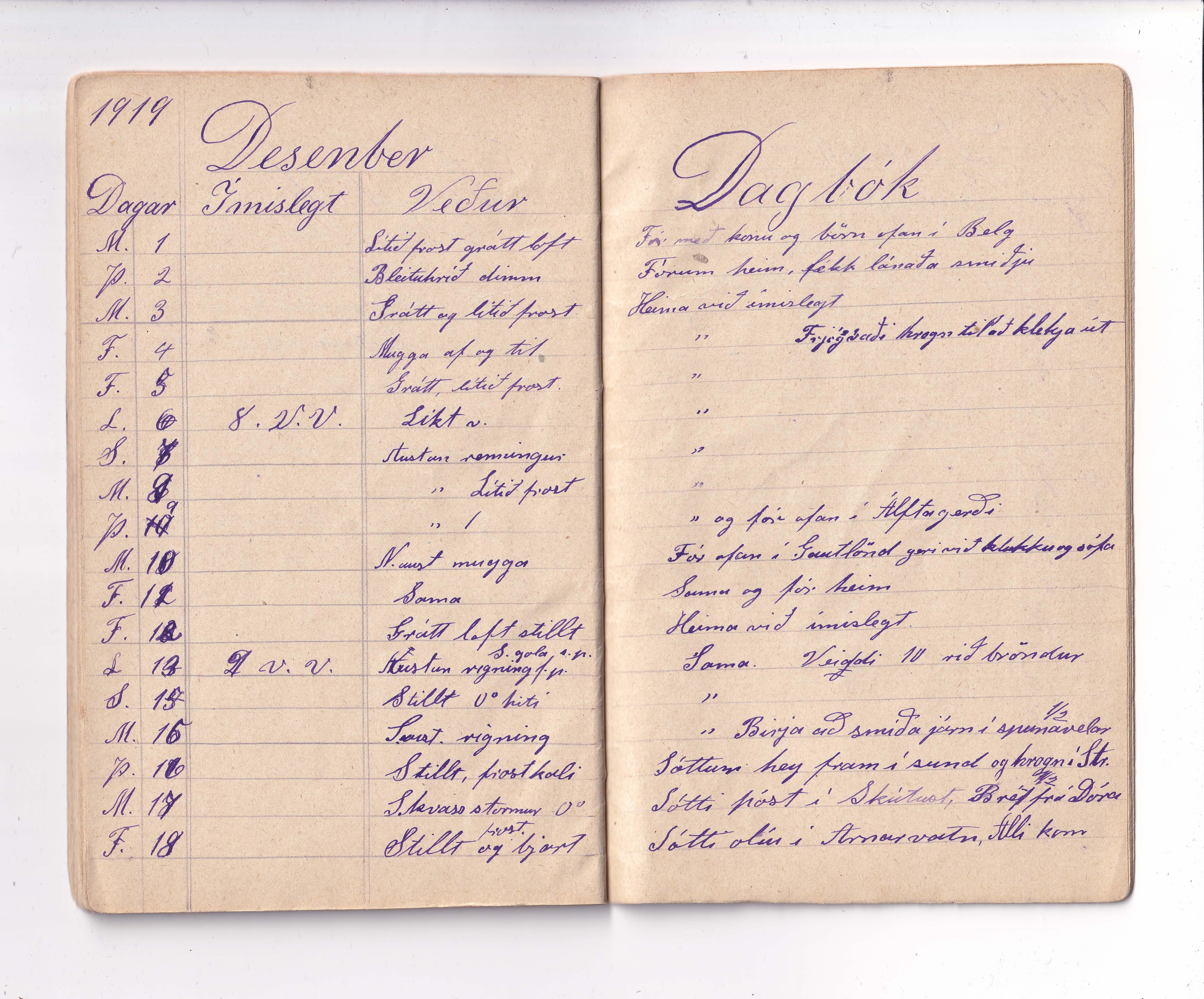 Bárður Sigurðsson. Dagbók 1918-1919.