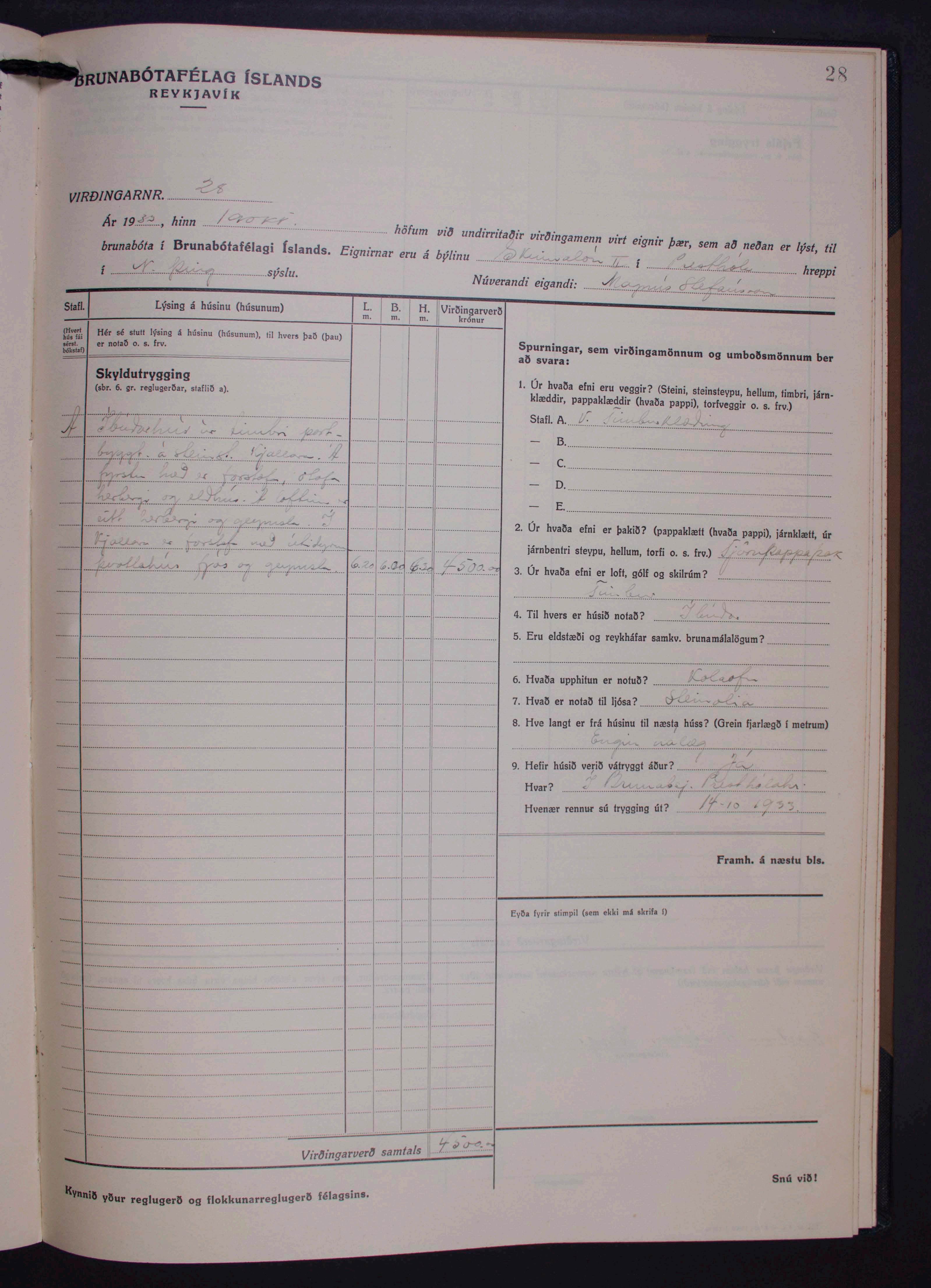 E-1260/10 Presth贸lahreppur. Vir冒ingab贸k brunab贸tasj贸冒s Presth贸lahrepps 1933-1933.