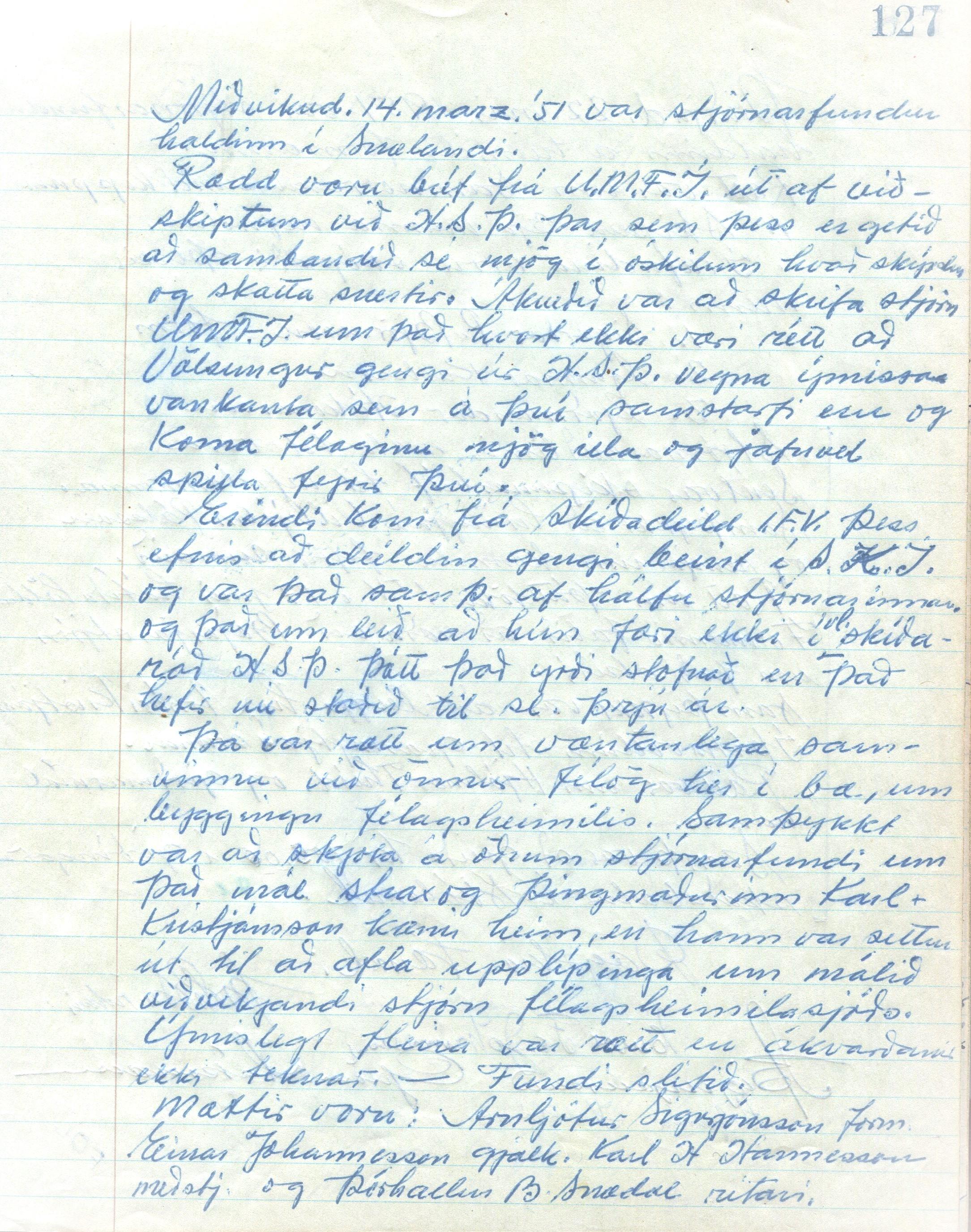 HérÞing. E-429/3 Íþróttafélagið Völsungur Húsavík. Fundagerðabók stjórna og nefnda 1944-1962.