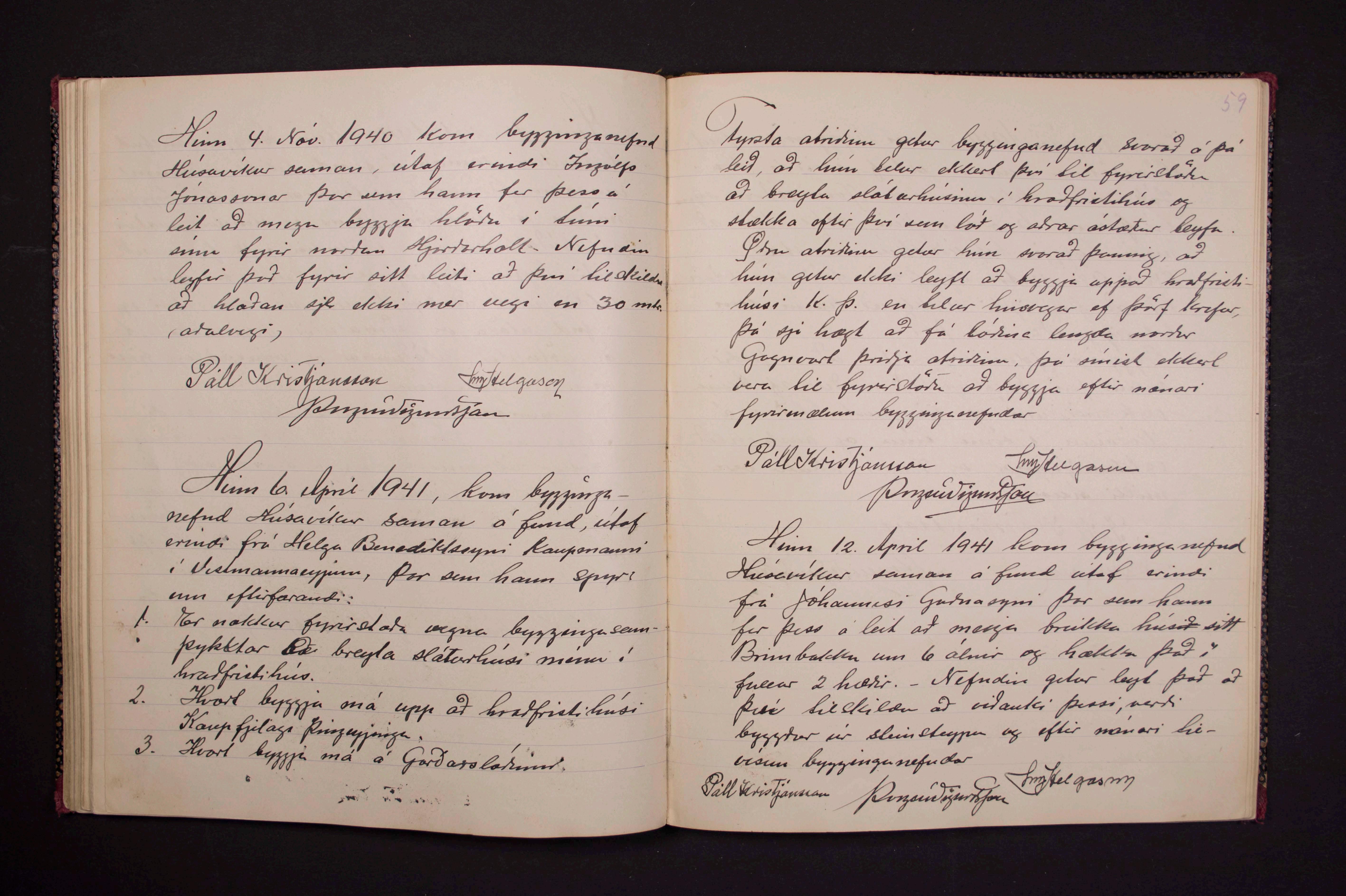 HRP-153/4 Húsavíkurhreppur. Gjörðabók bygginganefndar Húsavíkur 1922-1945.